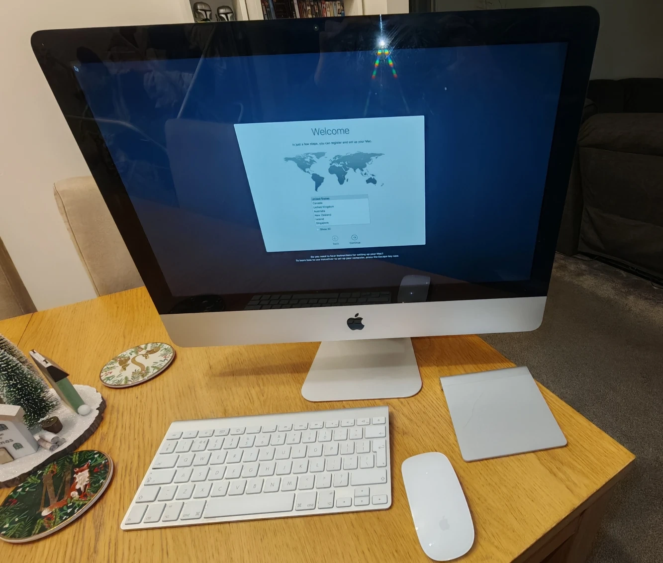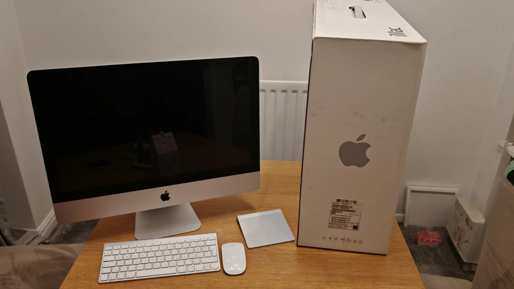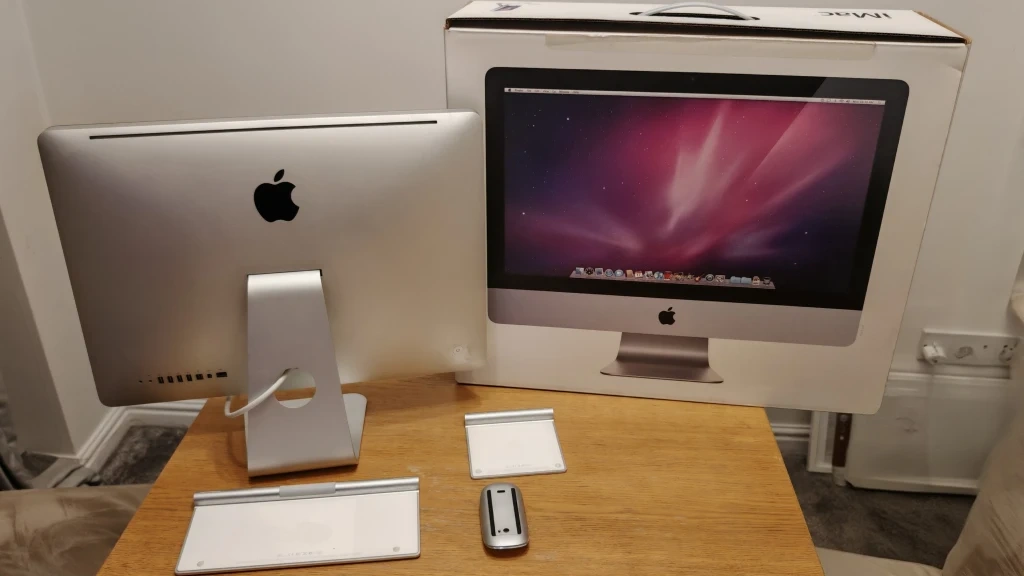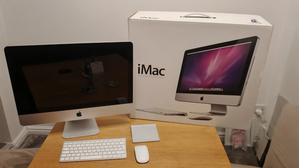 28 reviewsApple IMAC 21.5" 3.06Ghz CPU / 2x2GB / 500GB / ATI 9400M / SD / DVD Drive / Webcam / WLMKB (MB950B/A) Apple Keyboard Wireless Apple Magic Mouse Wireless Apple Magic Trackpad Wireless Original IMac Box IMac is in great condition only mark is on the Trackpad. IMac has built in speakers, DVD Drive, integrated microphone, headphone out etc The IMac would benefit with a memory upgrade (supports up to 16GB) and installation of a SSD drive to improve it's performance which there are online video tutorials to follow. I've factory reset it with Sierra OS as per last photograph. Connects to 10/100/1000 Ethernet or 2.4Ghz/5Ghz WiFi.
