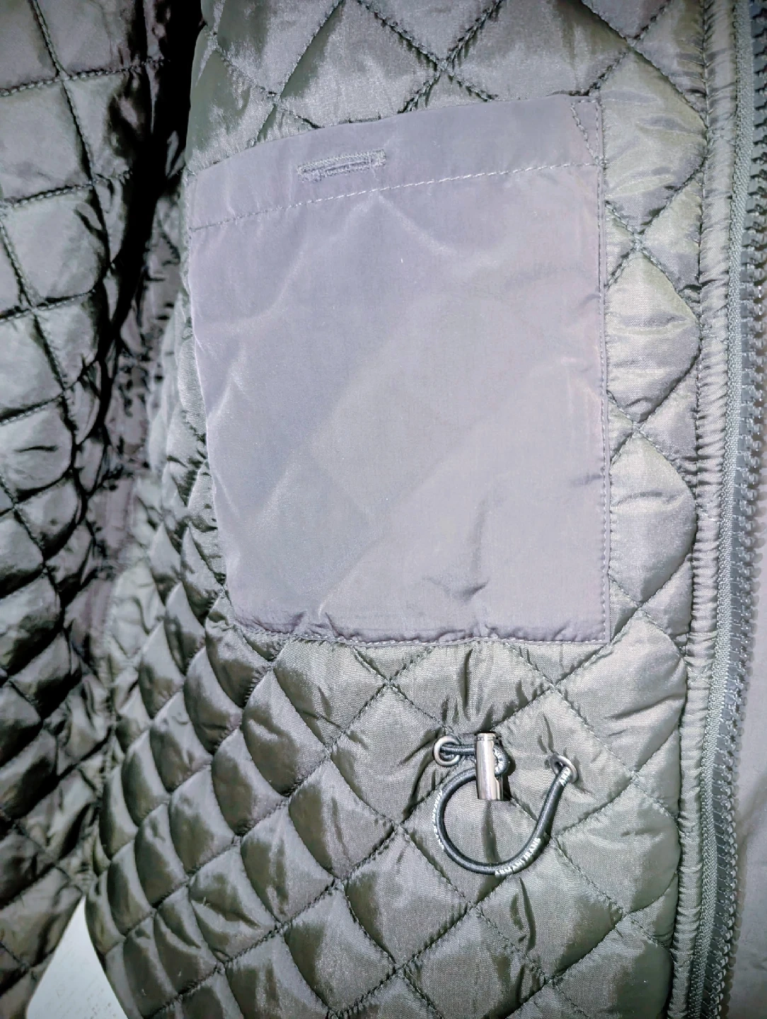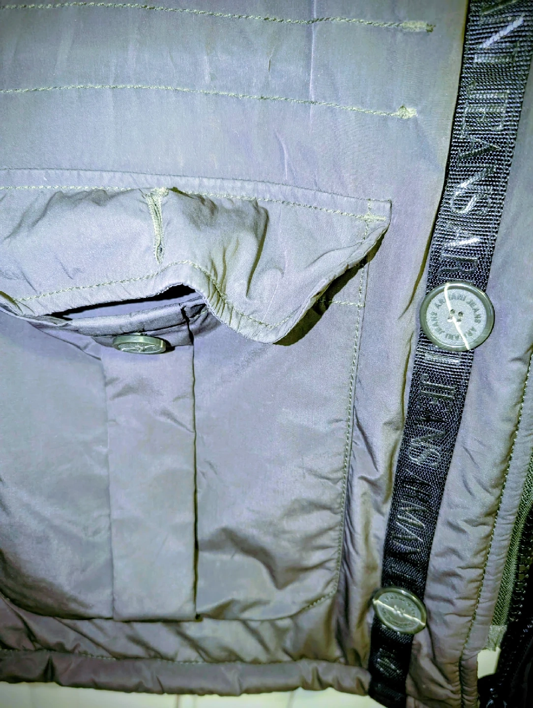 0 reviewsHere's an Armani Jeans jacket in an olive green colour. It's a padded jacket with a hood, perfect for keeping warm. The inside is quilted, adding an extra layer of comfort and style mens xl