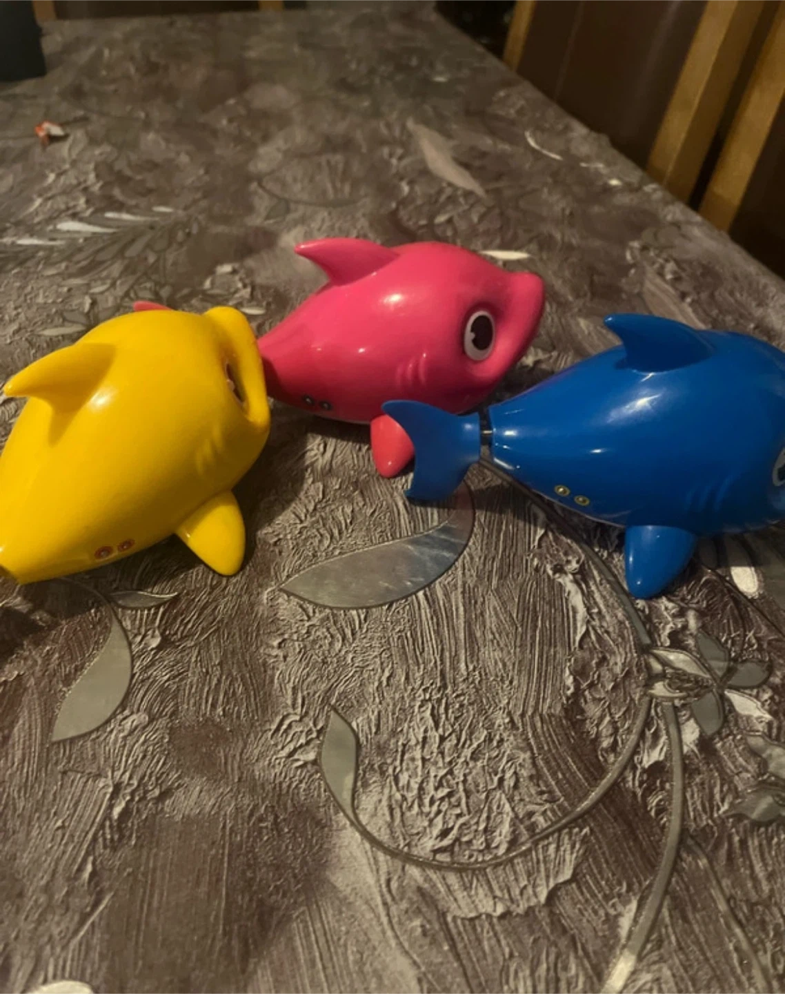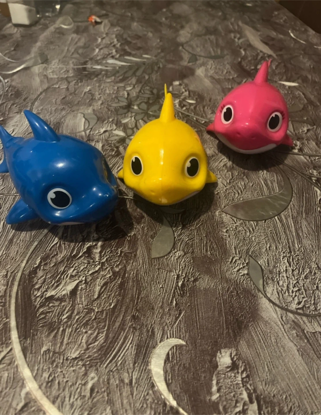 2 reviewsSelling a set of three Baby Shark toys! They're in great condition and ready for a new home. Includes the yellow, pink, and blue sharks as pictured. Perfect for little ones who love the Baby Shark song!