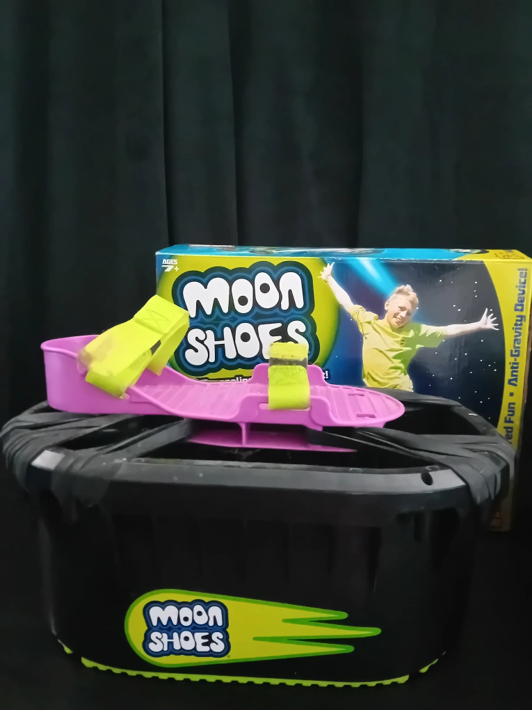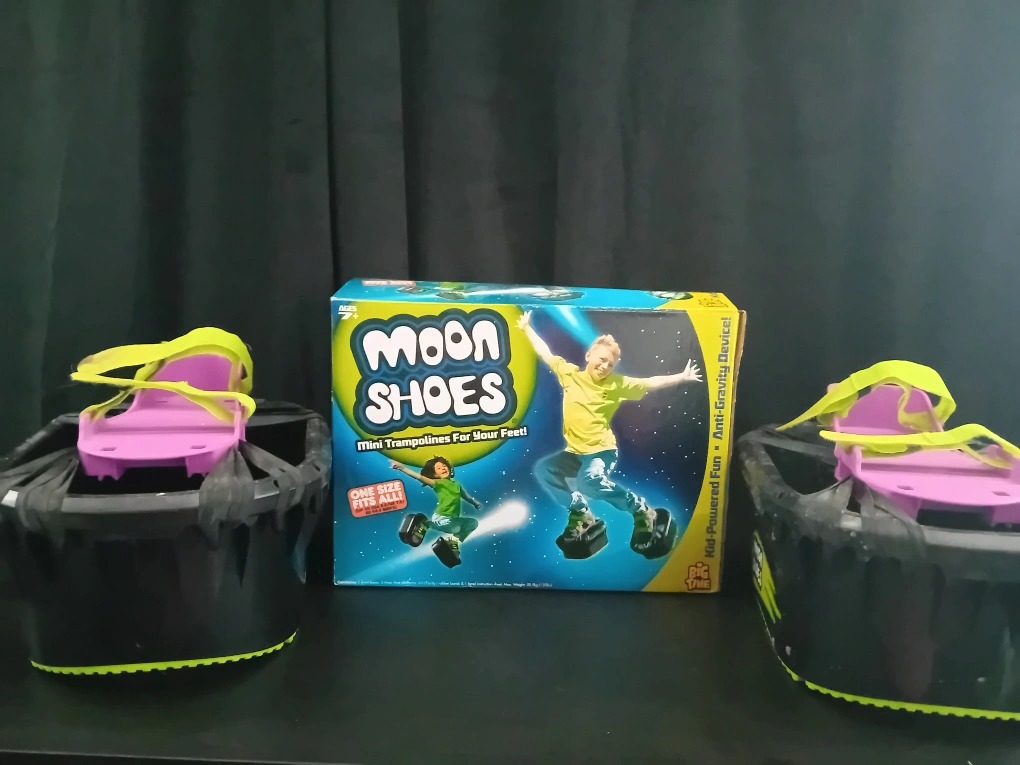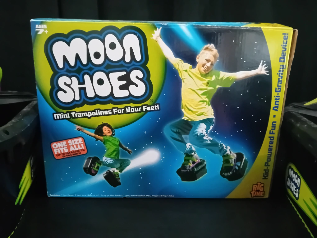 0 reviewsGet ready to bounce with these Big Time Toys Moon Shoes! They're like mini trampolines for your feet, offering kid-powered fun and an anti-gravity device experience. These come with the original box, 2 moon shoes, 45 (forty-five) rubber bands and an instruction sheet. One size fits all!