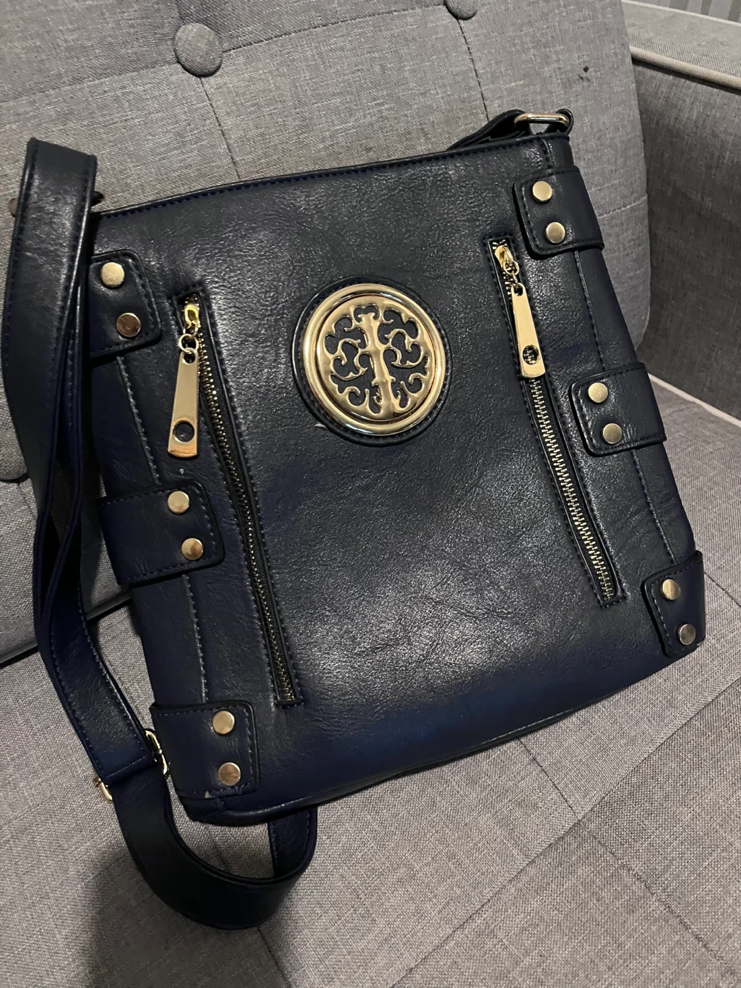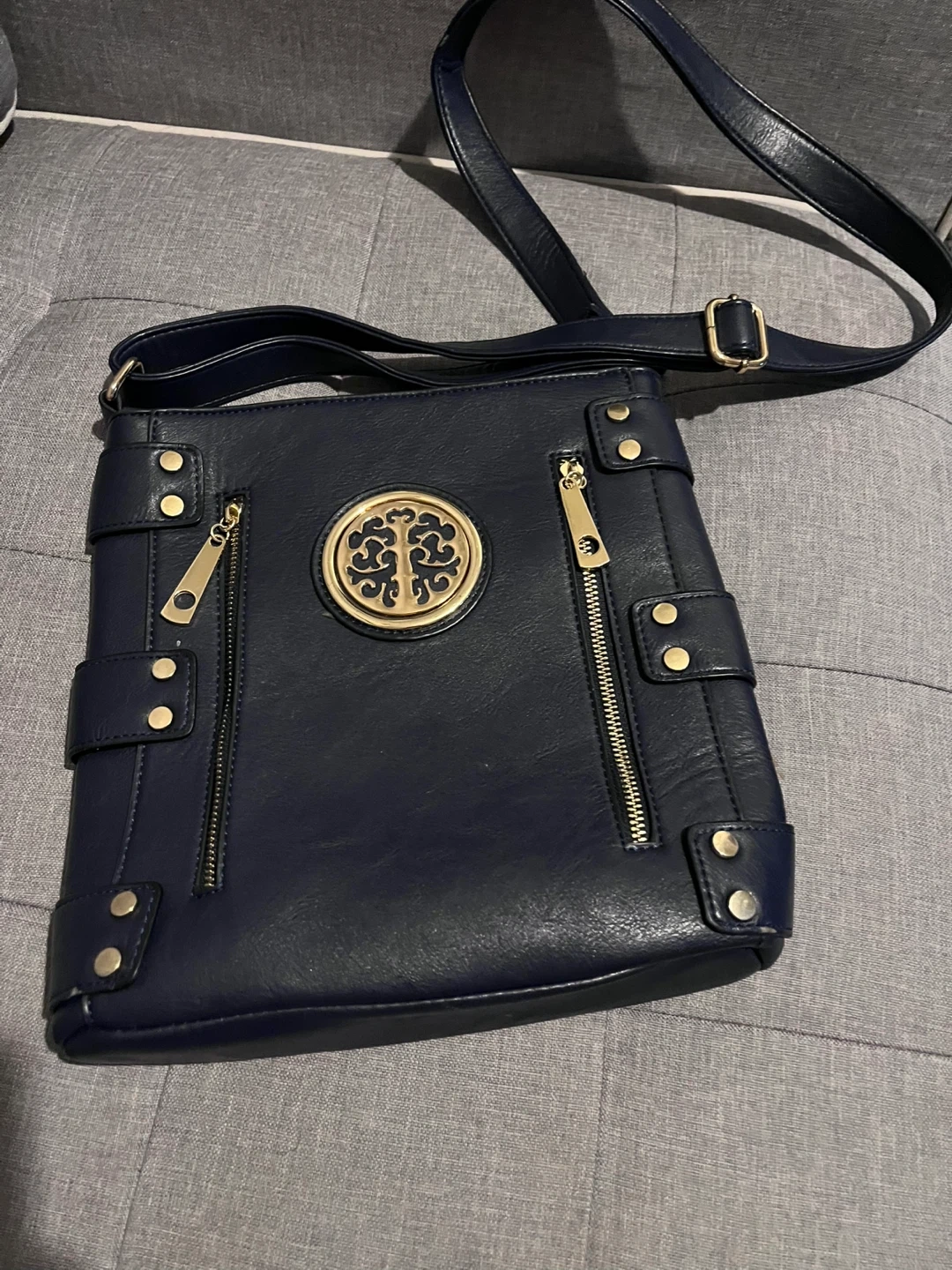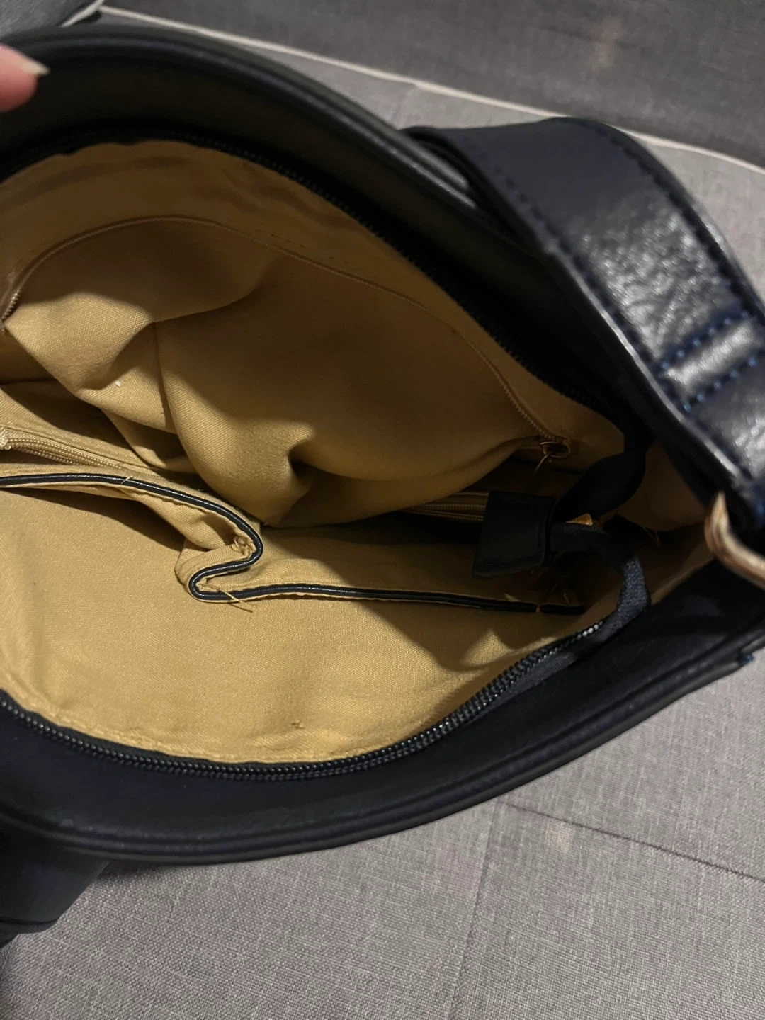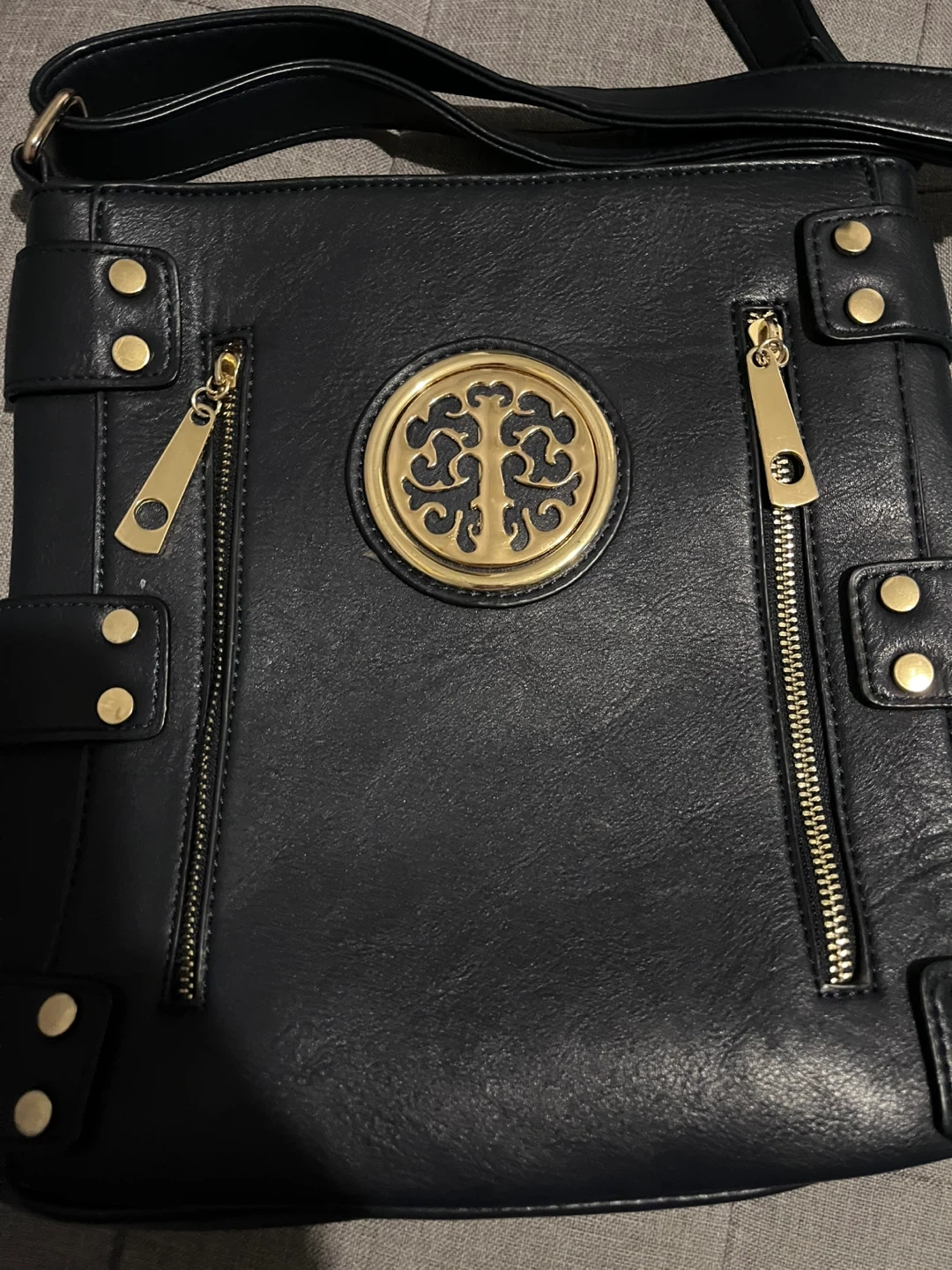 2 reviewsHere's a stylish black crossbody bag! It features gold-tone hardware and a unique circular emblem on the front. It's perfect for everyday use and keeping your essentials organised.