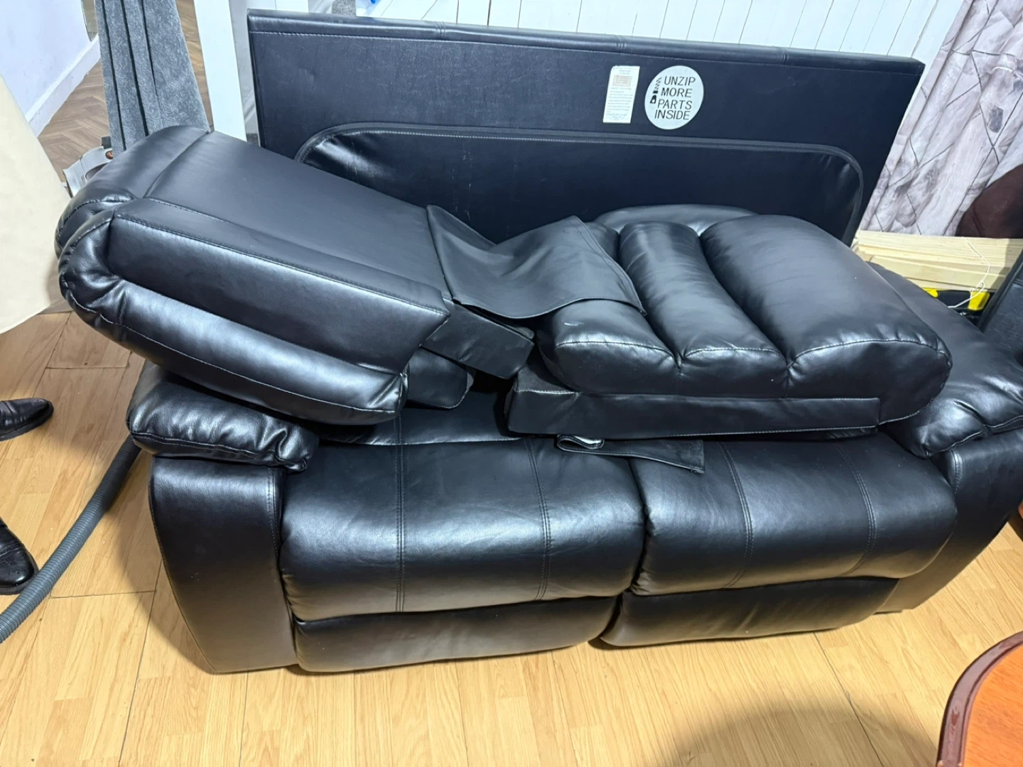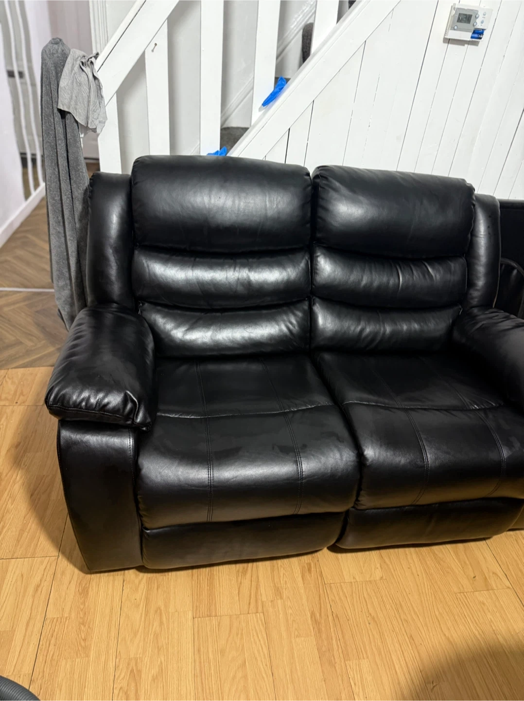 17 reviewsSelling a comfy black leather recliner sofa. It's in good condition and perfect for relaxing after a long day. The sofa features a reclining function for added comfort. It's a great addition to any living room!