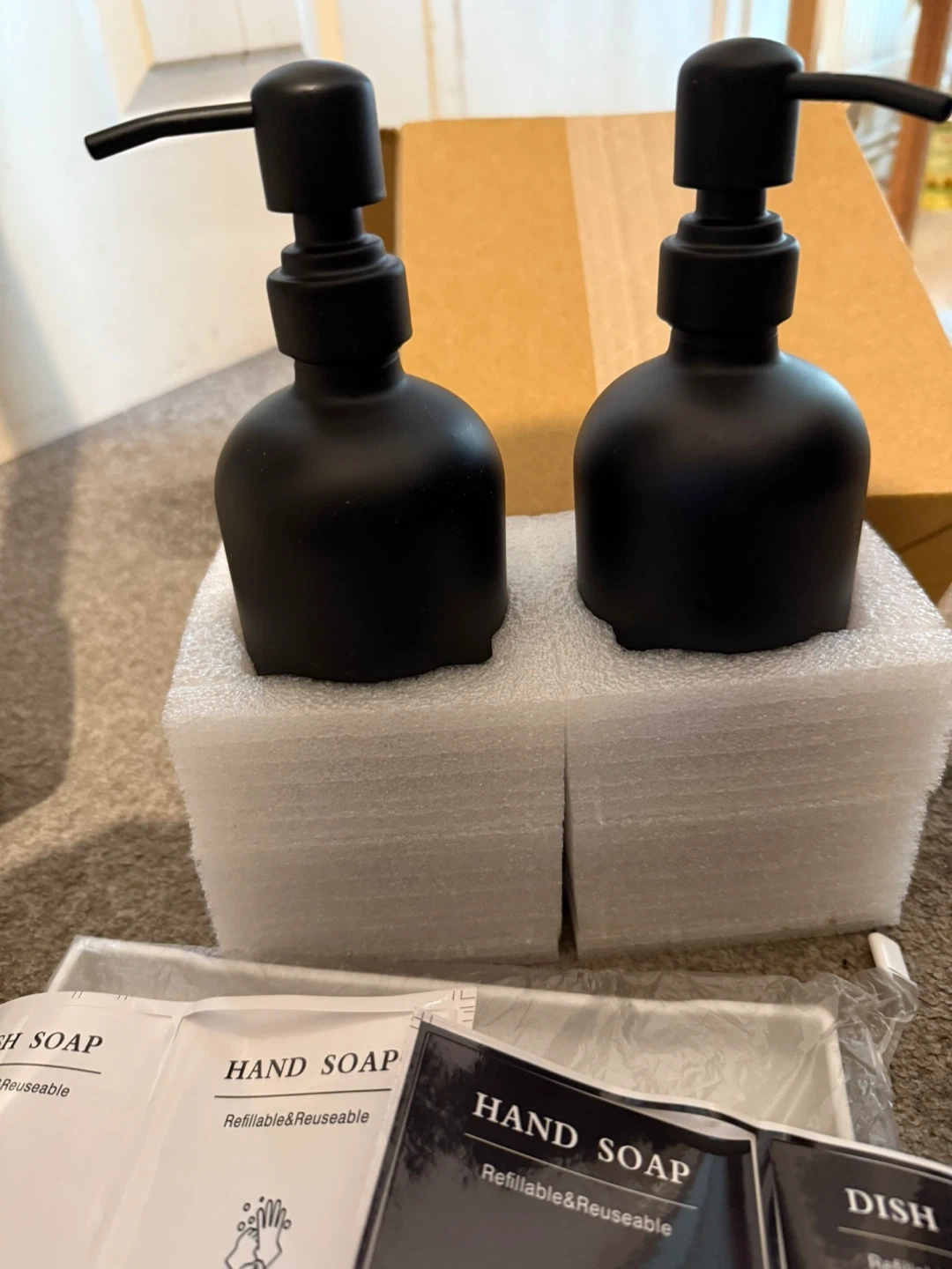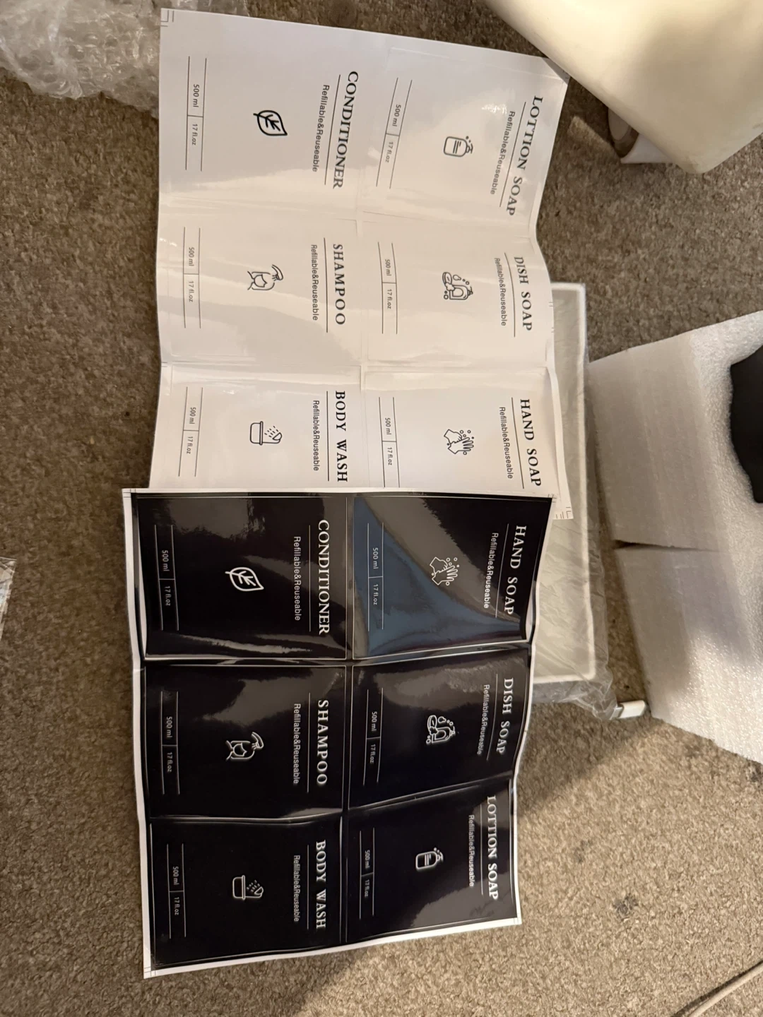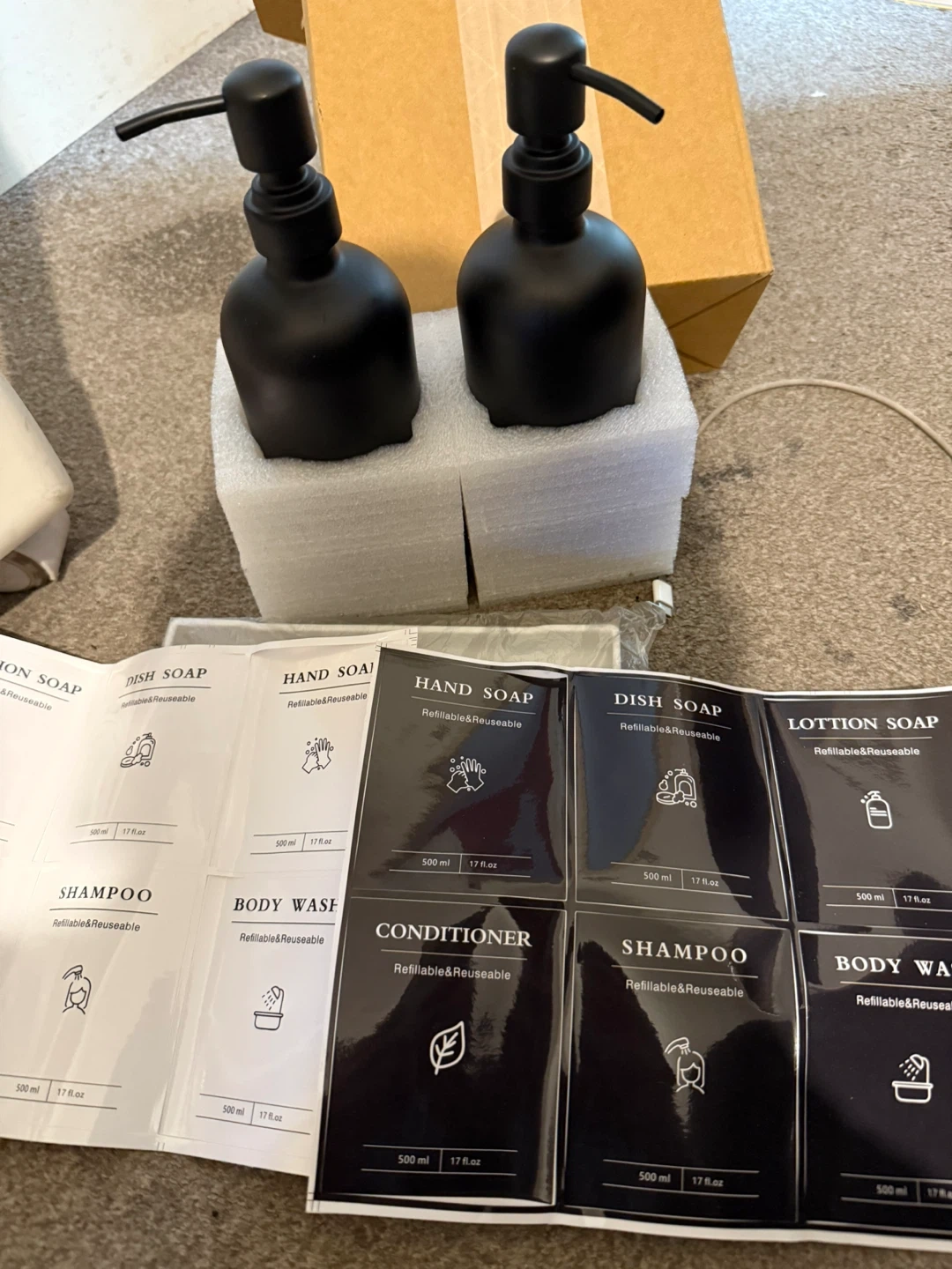 0 reviewsSelling a set of refillable soap dispensers in black. They are suitable for hand soap, dish soap, lotion, shampoo, body wash, and conditioner. Comes with labels to stick on the bottles. Perfect for keeping your bathroom or kitchen tidy