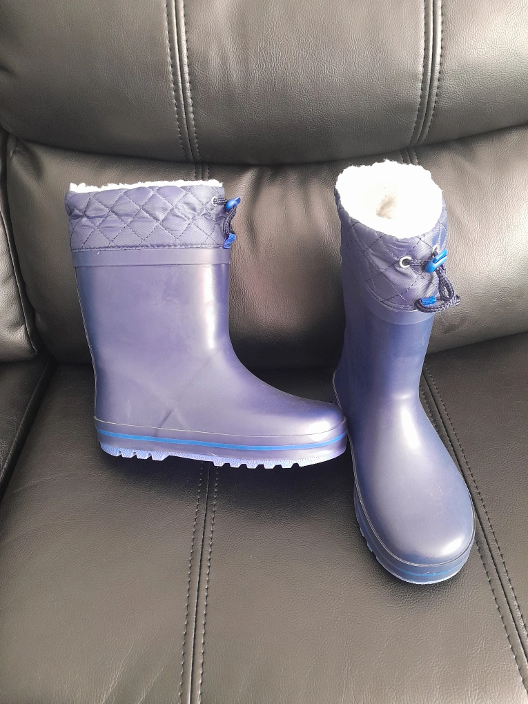 9 reviewsThese are a lovely pair of blue wellington boots for kids. They feature a quilted design at the top and a cosy, fluffy lining to keep little feet warm and dry. The size is UK 12 (30/31).