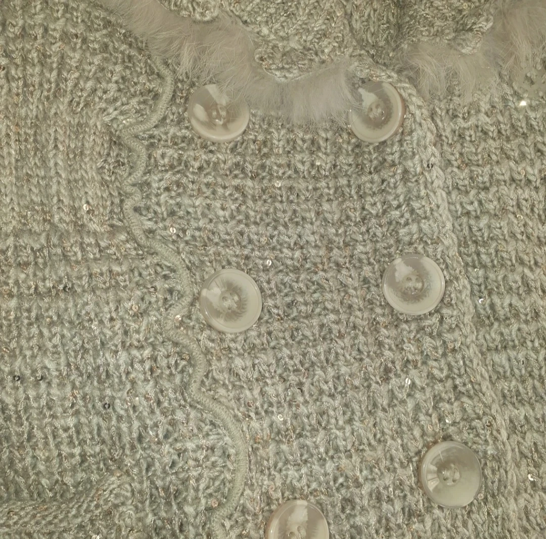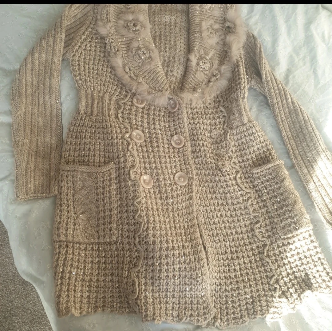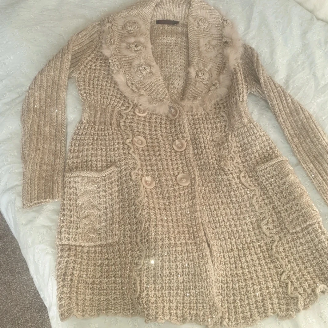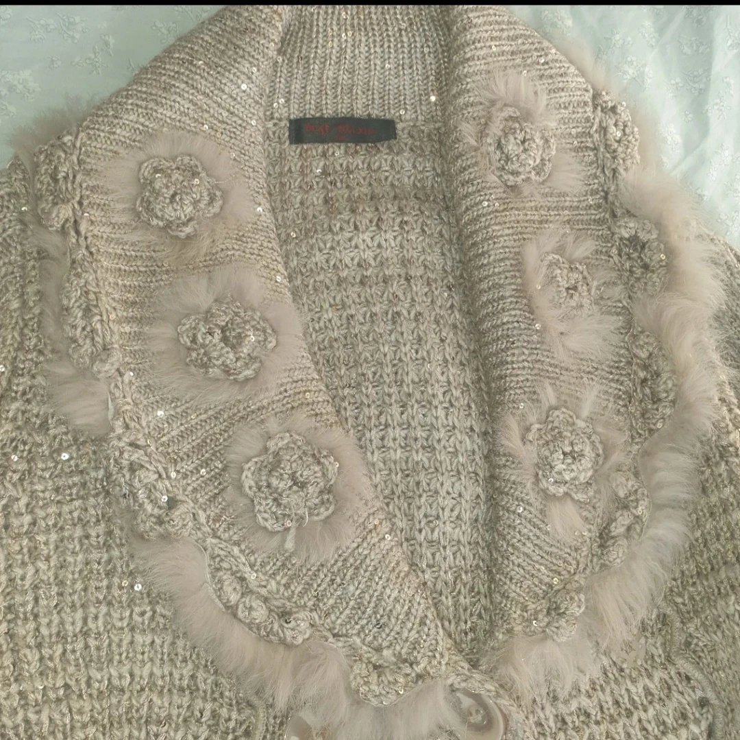 9 reviewsA lovely knit cardigan from Boşe Belxing. It's a size S/M and features a beautiful beige colour and unique design with faux fur trim and floral embellishments