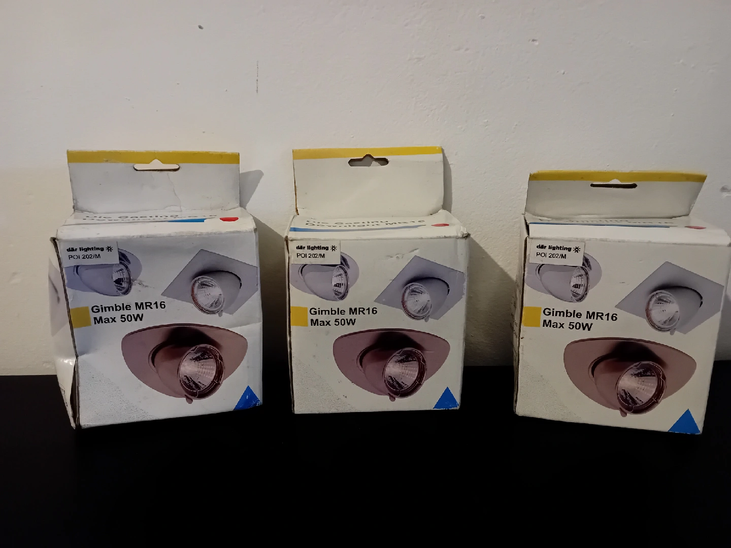 0 reviewsSelling three Där Lighting Gimble MR16 spotlights, each with a maximum power of 50W. They come in their original boxes, ready to be installed. Perfect for adding some focused light to any room £2 each Or all 3 for £5