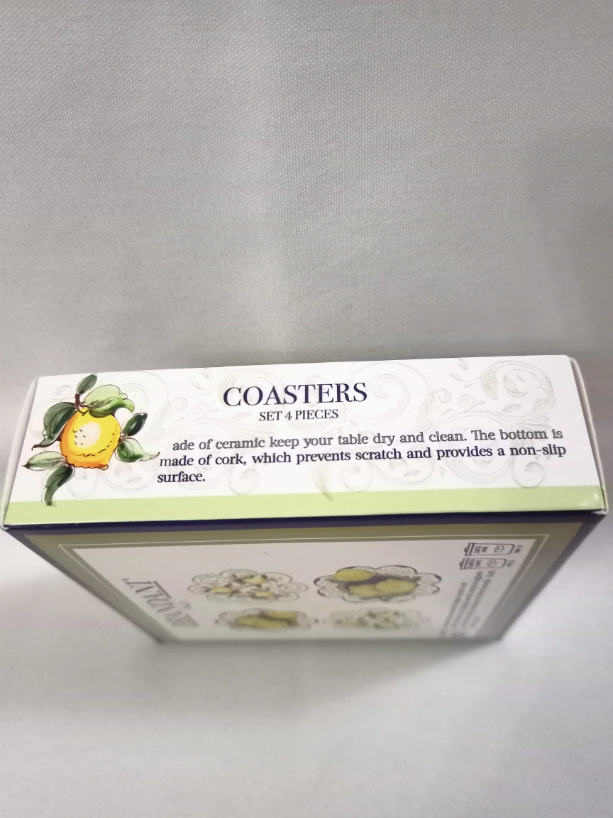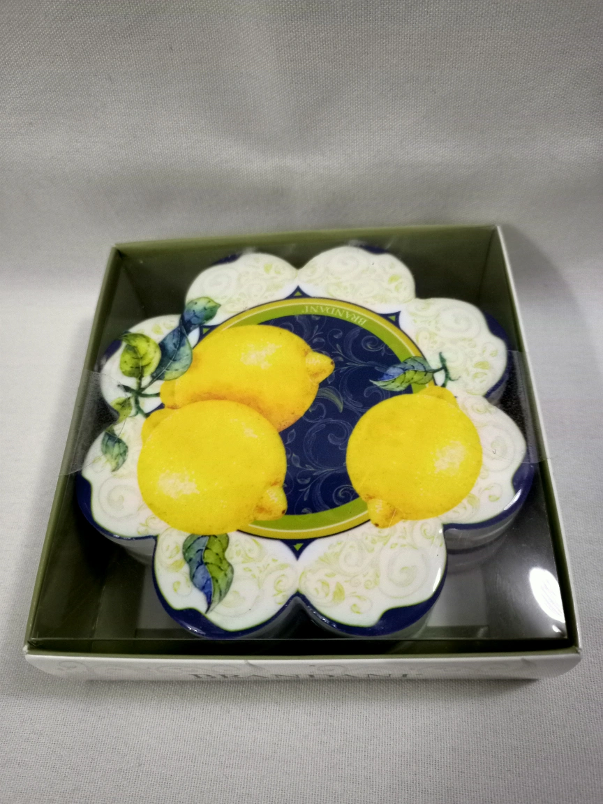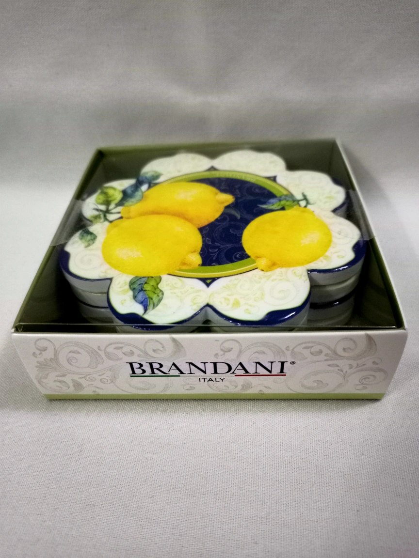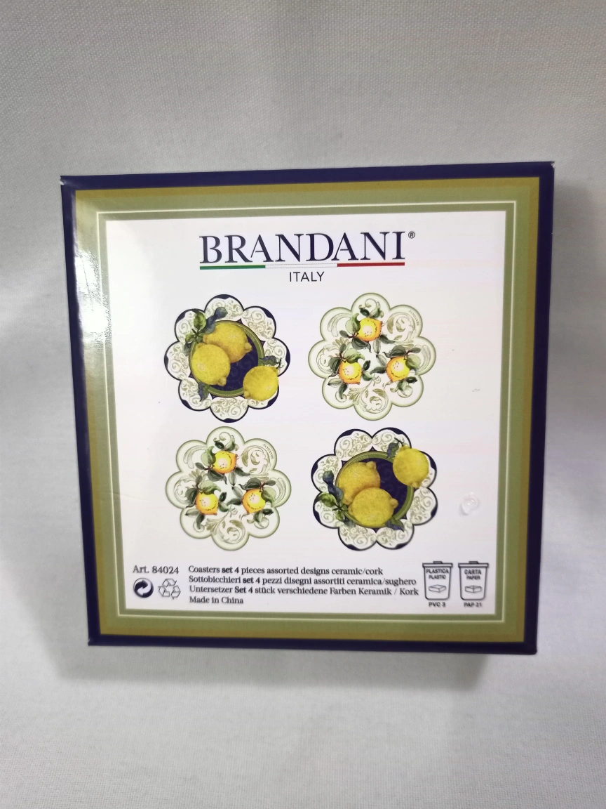 149 reviewsLOVELY BRANDANI ITALY QUALITY CERAMIC COASTERS LEMON DESIGNS CORK BASES TO PREVENT SCRATCHES AND SLIPPING GREAT WEIGHT STILL SEALED AS NEW.