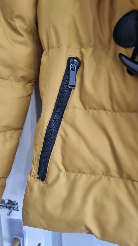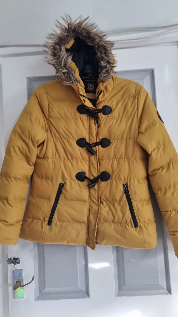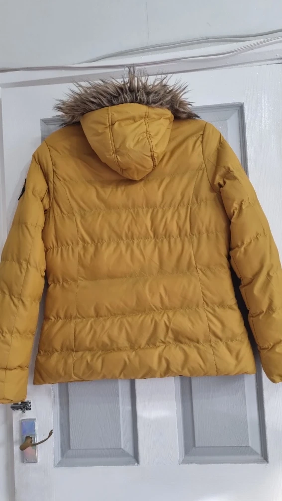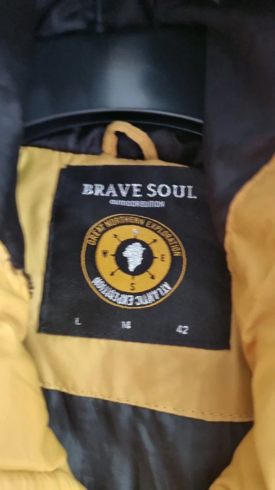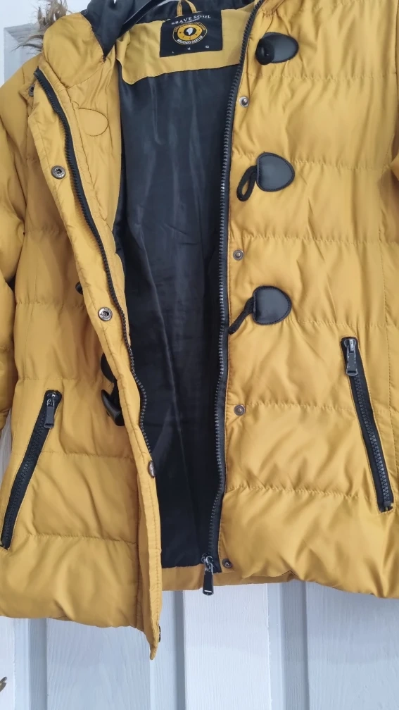 24 reviewsBrave Soul mustard puffer jacket in size L. Features a faux fur hood and toggle fastenings. Perfect for keeping warm this winter! label says large, more of a size 12.