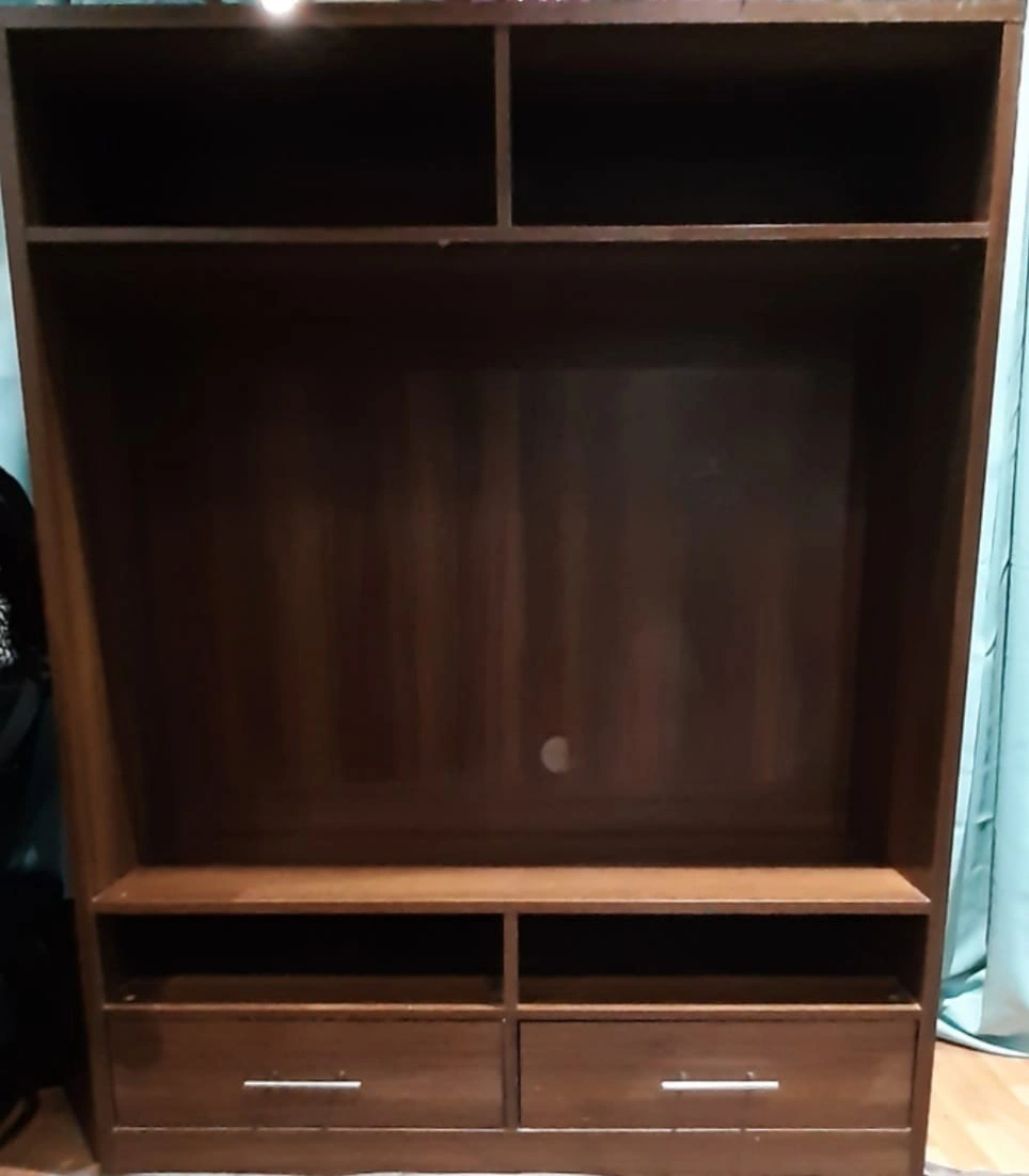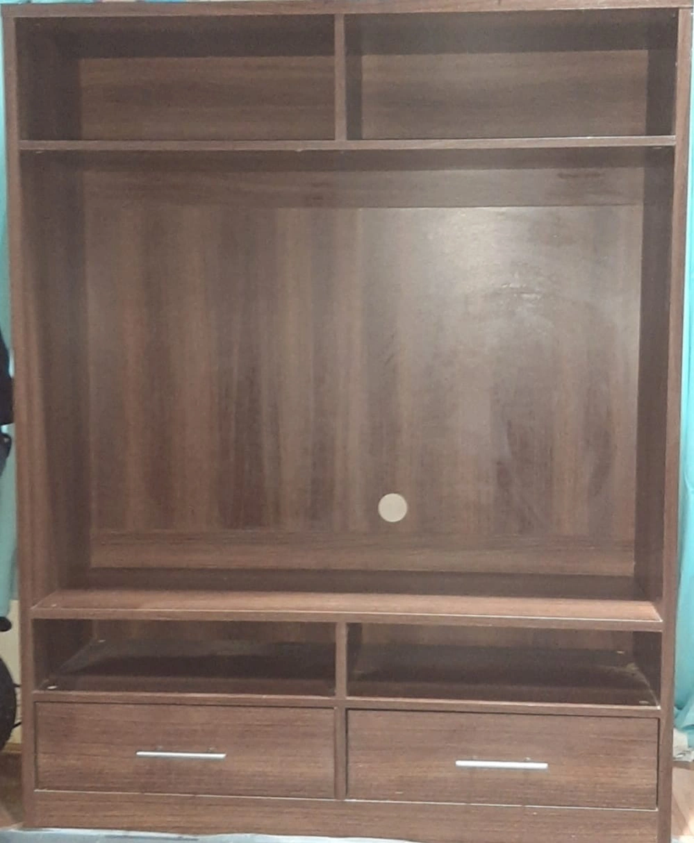 64 reviewsHere's a lovely brown wooden entertainment unit. It features shelving at the top, a large central space for a TV, and drawers at the bottom for storage. It's perfect for tidying up your living room