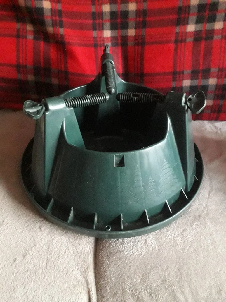 16 reviewsGood Quality. Approximately 10 1/2" across Top. 16" across Base. Green. With a 5 1/2" deep water reservoir. Helps reduce needle drop. Adjustable screw bolts to hold tree trunk secure. Easy to use year after year. Easy to clean. In Good Condition. Originally bought from 'Woods Farm'. Not aloud a real Christmas tree where I've moved to 🥲Collection Preferred from B90 4XA. No Returns or Refunds. Prompt collection advised as item remains For Sale till payment is received. Postage costs would be extra. (£5.40 with Yodel Direct).