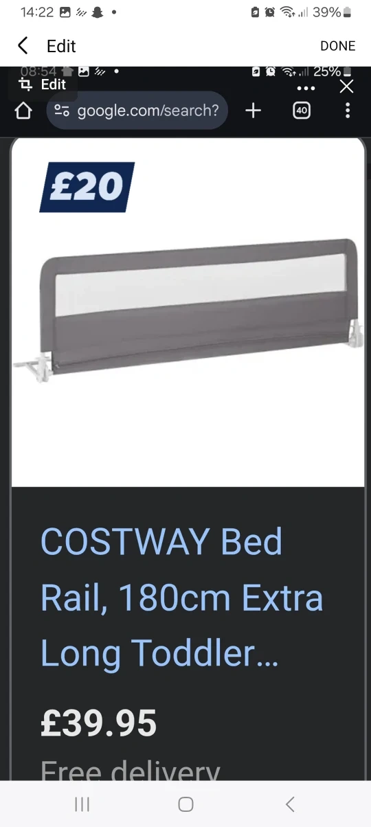 2 reviewsSelling a COSTWAY bed rail, perfect for toddlers. It's extra long at 180cm. Originally bought for £39.95