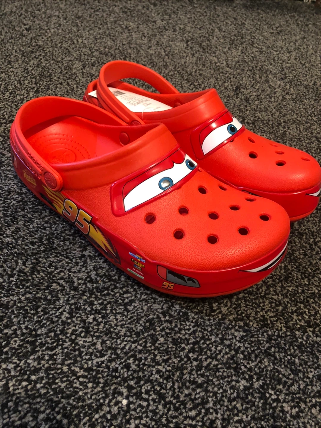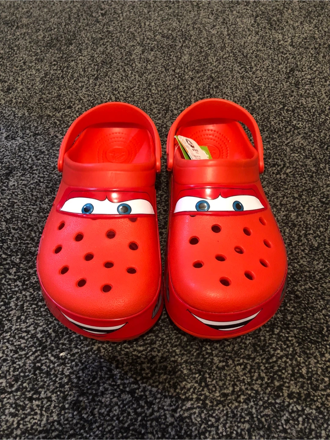 0 reviewsHave a pair of bright red Crocs featuring Lightning McQueen from 'Cars'! They're in great condition. But we don’t have size 10 for men we have all other sizes.