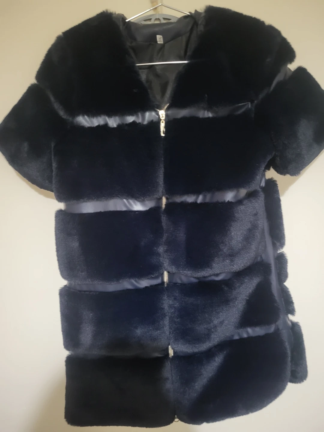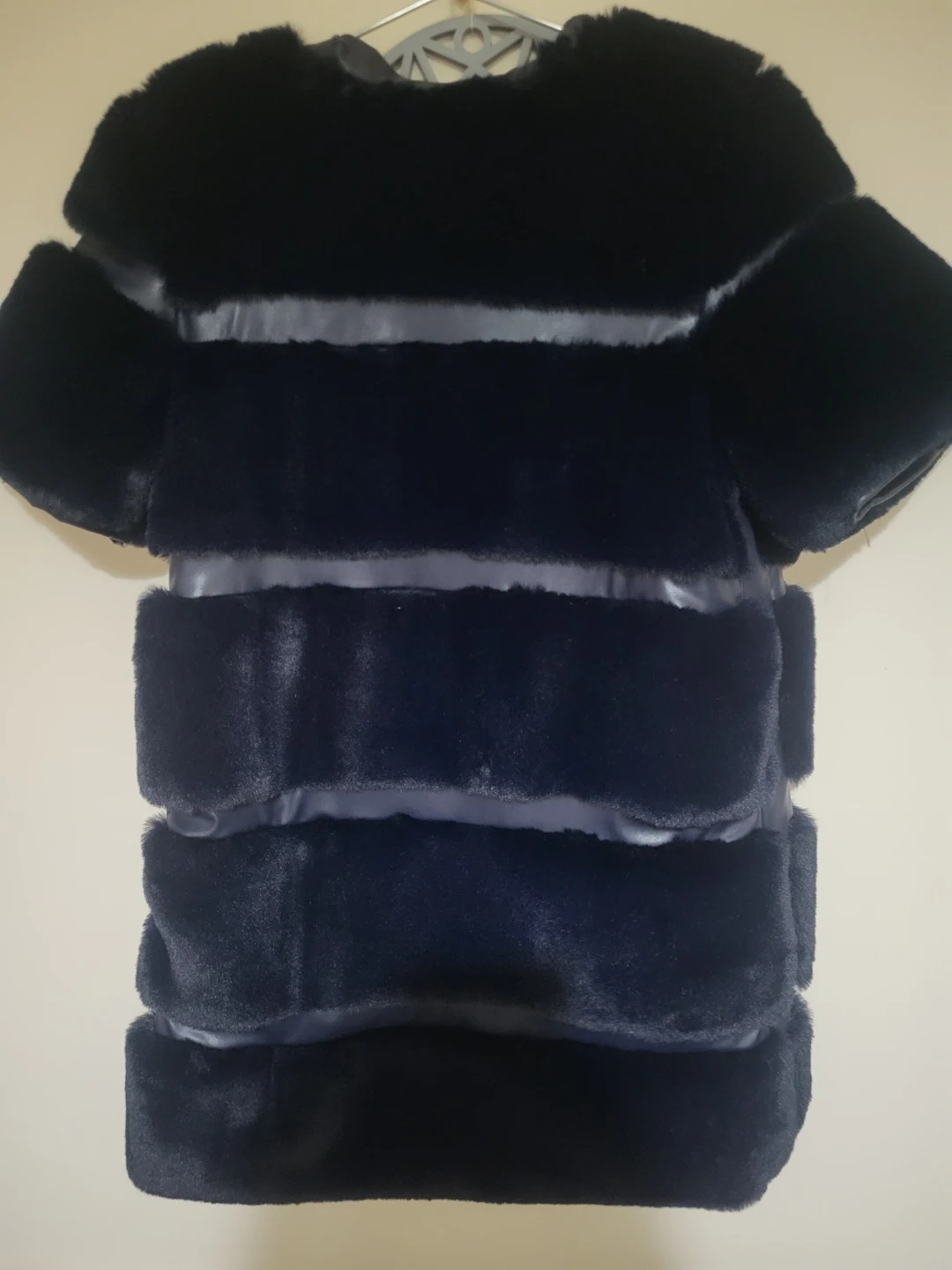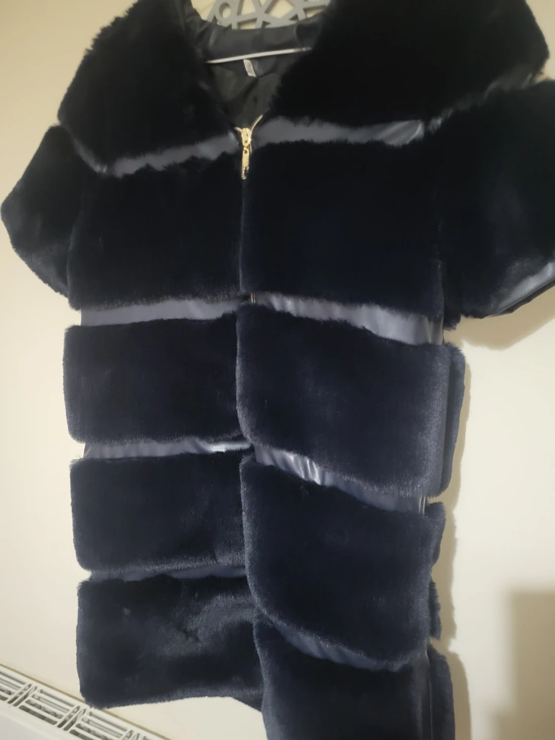 0 reviewsHere's a stylish dark navy blue faux fur gilet with short sleeves. It features a zip-up front and a soft lining. Great for adding a touch of warmth and style to any outfit! Never used. Excellent condition. Collection only please.