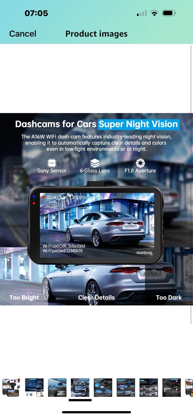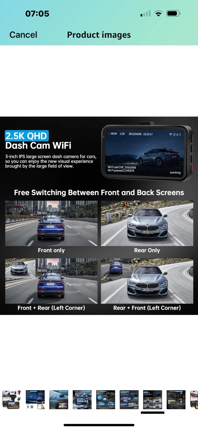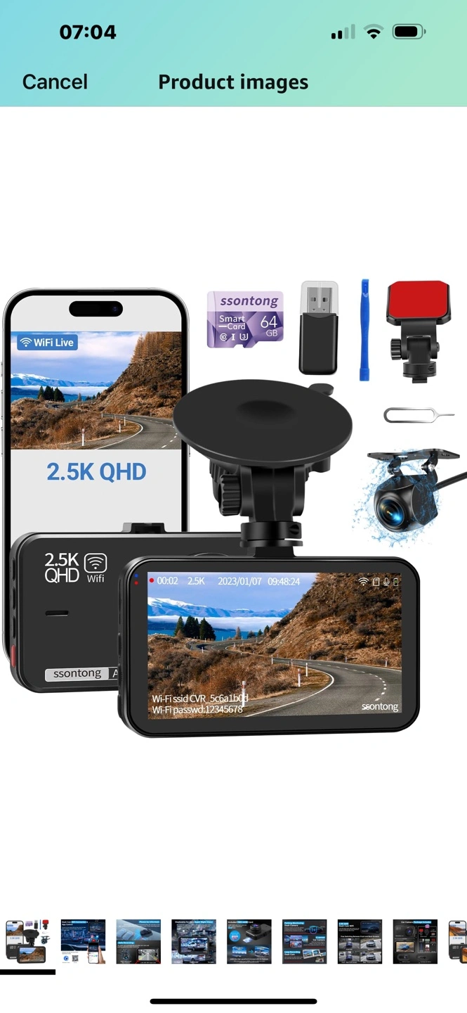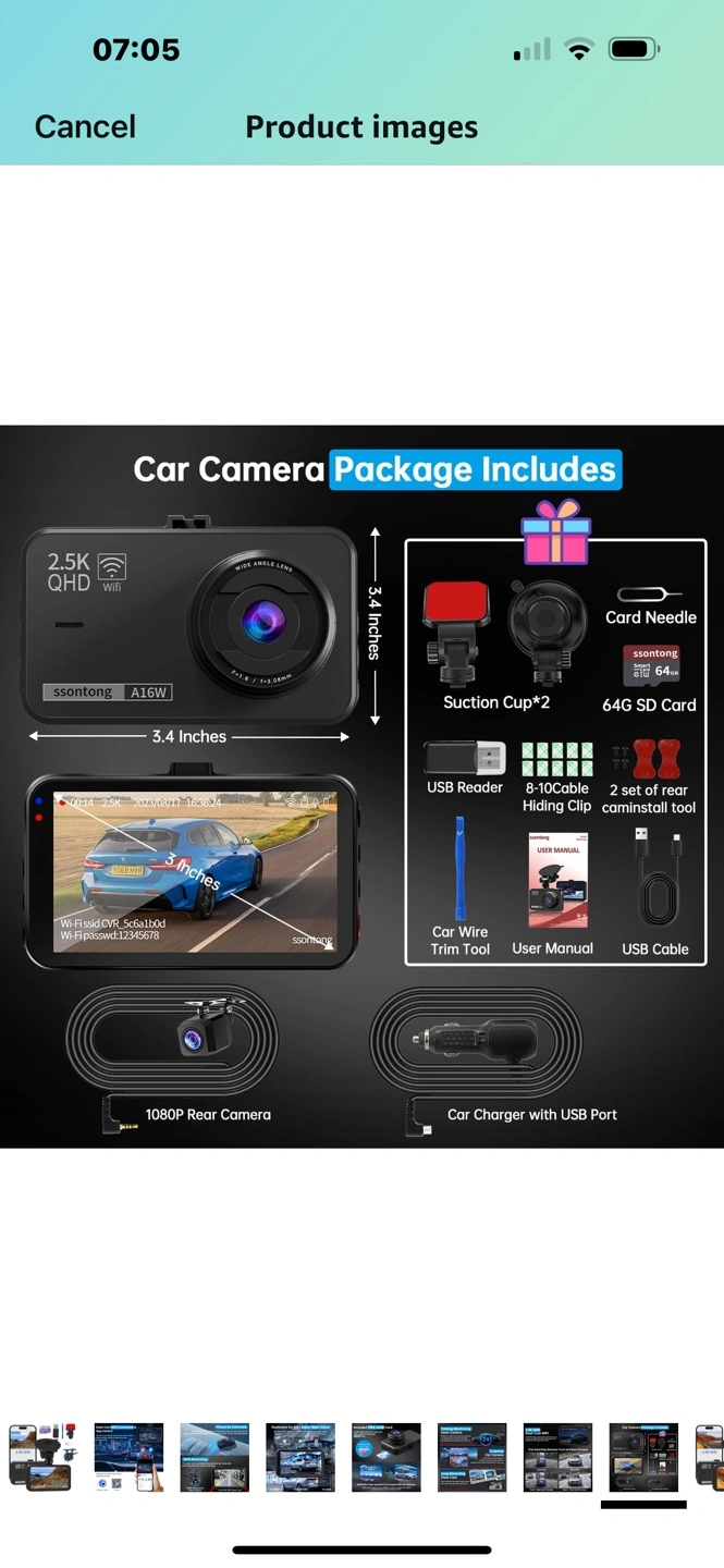 14 reviewsDash Cam Front and Rear, Dashcam WiFi/APP Control Car Camera Dash Cam W/ 64GB Card, 2.5K Dash Cam Front + 1080P Rear Dash Camera W/Super Night Vision, Loop Recording, G-Sensor, Max Support 256GB