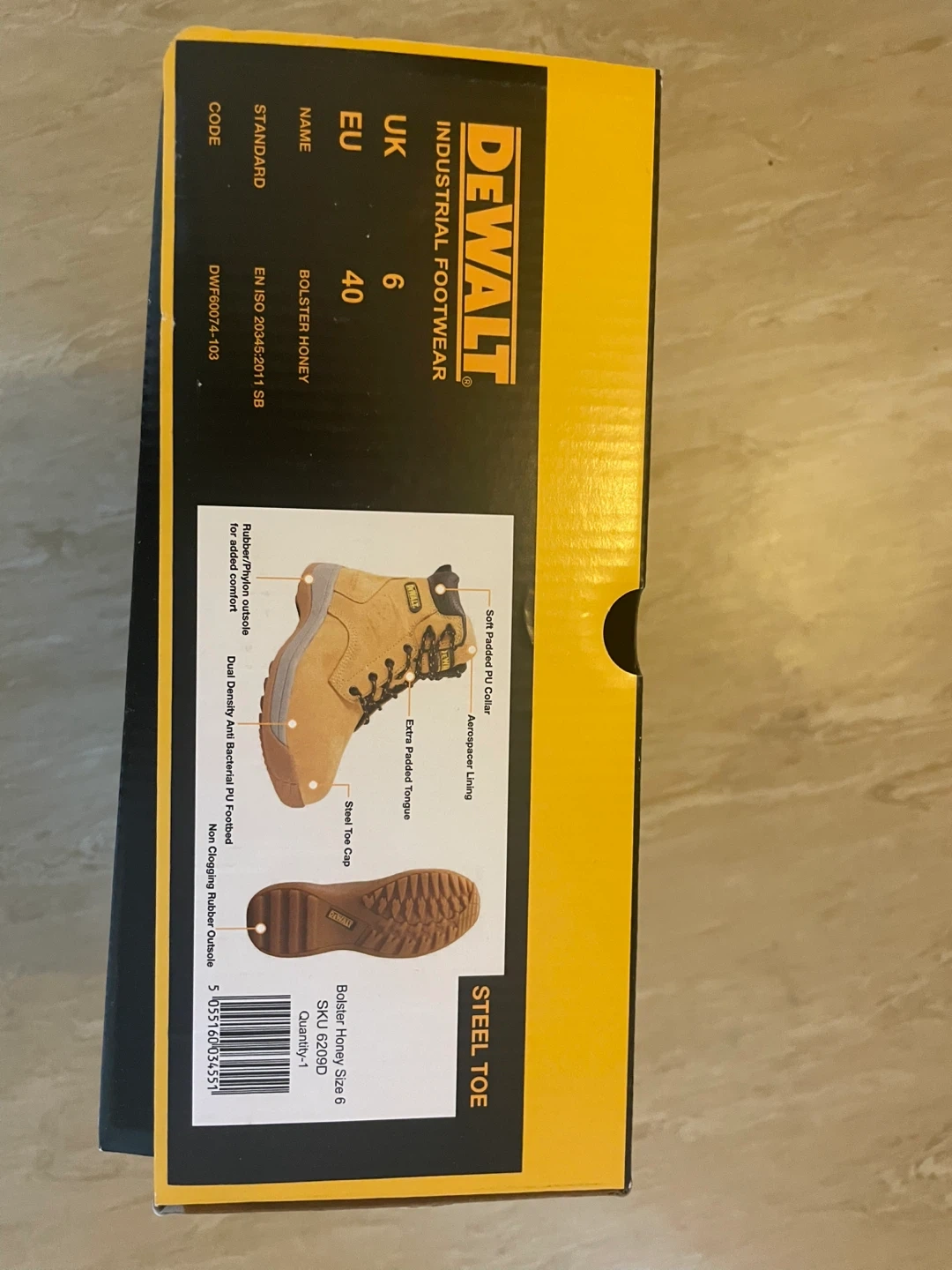 84 reviewsDE WALT Unisex Safety Boots💞Size UK 6 Only worn a couple of times, so like new. PICK UP ONLY from Cheadle, Stockport, SK8 Please look at my other items 🥰