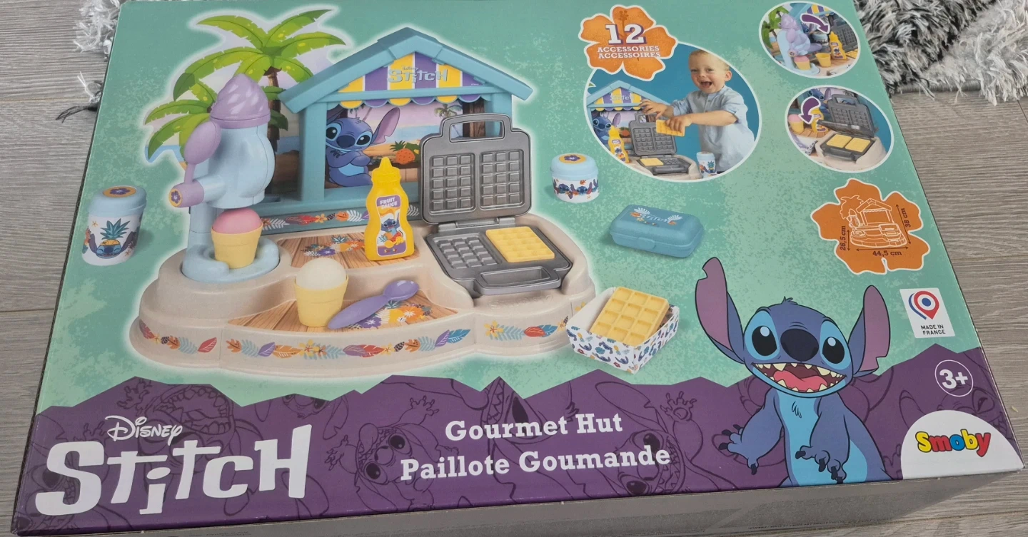 8 reviewsSelling a brand new, boxed Disney Stitch Gourmet Hut playset! This adorable playset includes 12 accessories for hours of imaginative fun. It's perfect for little ones aged 3 and up. Made in France by Smoby. Dimensions are approximately 26.5cm x 44.5cm x 38cm. Collection Chorlton Manchester