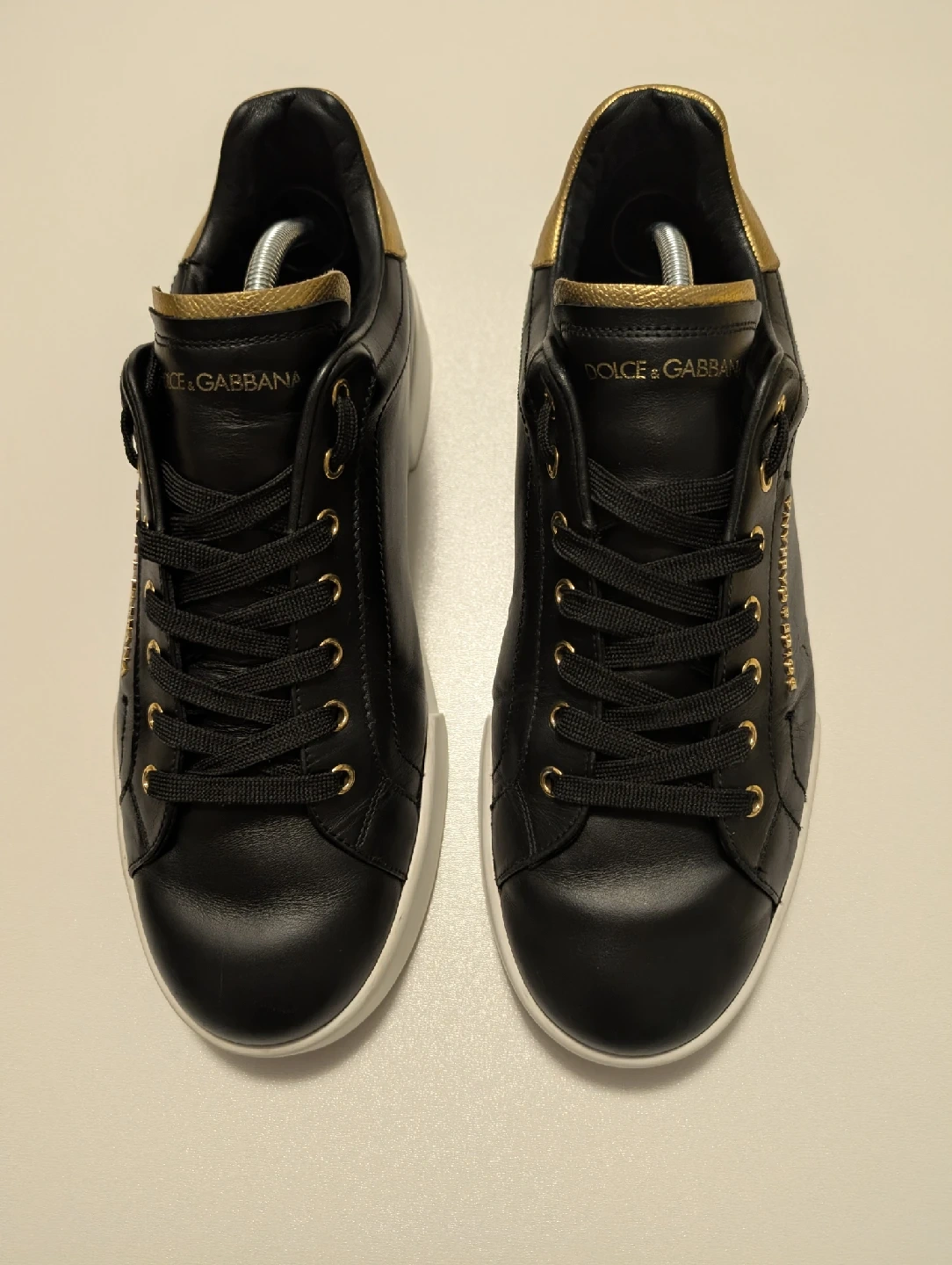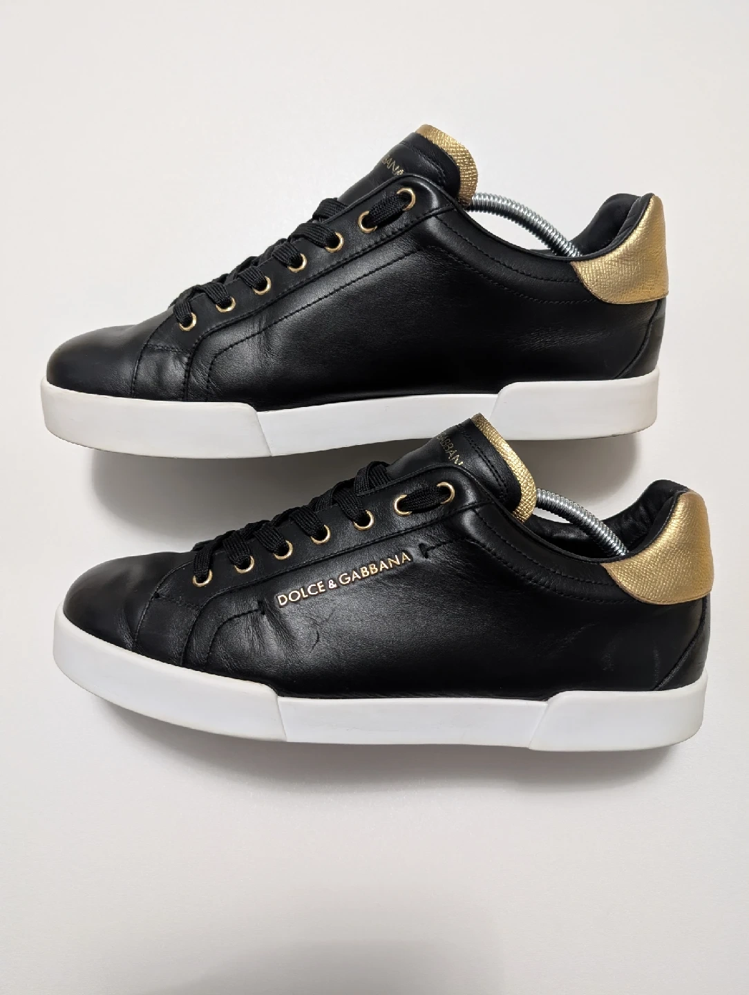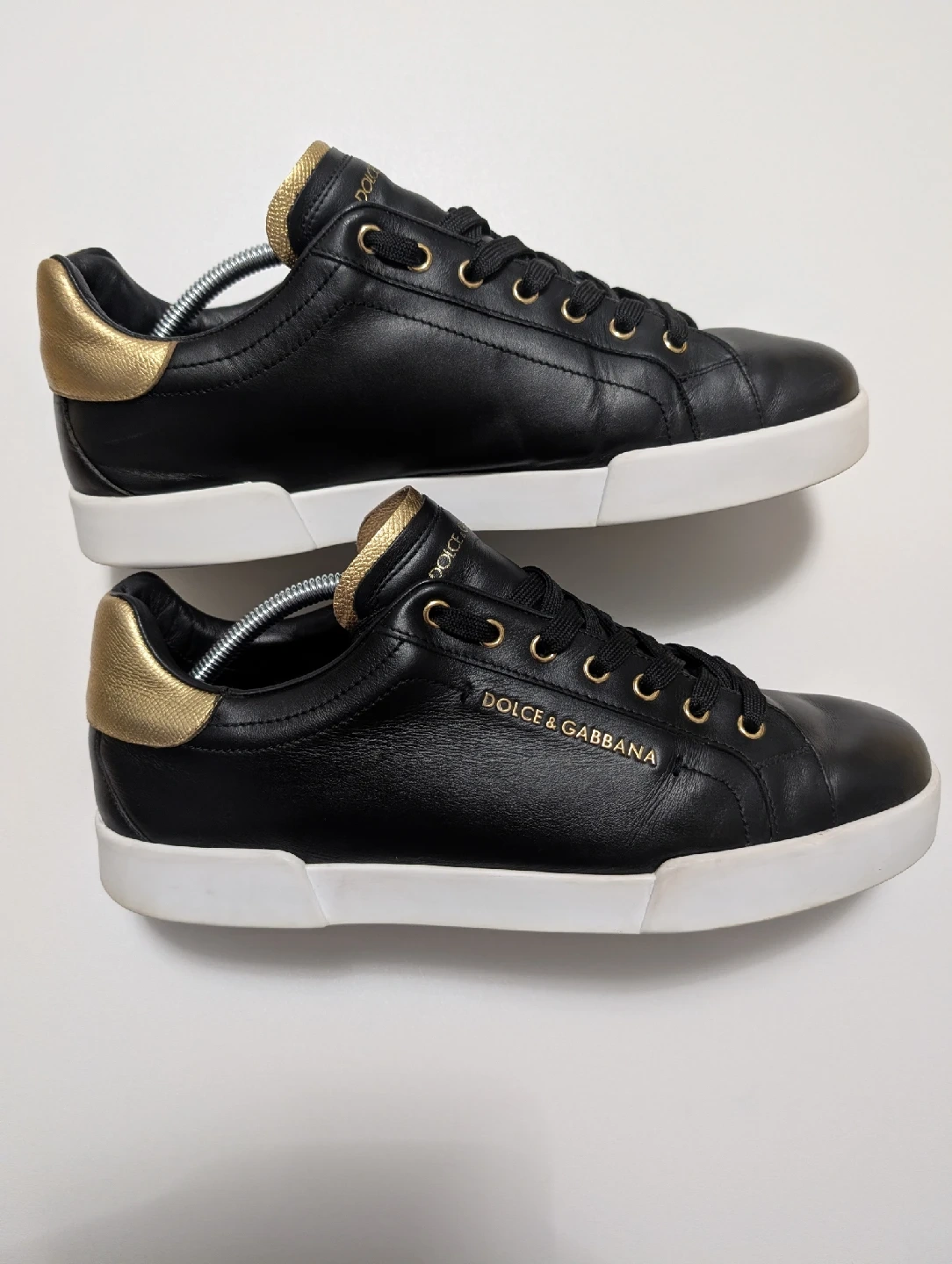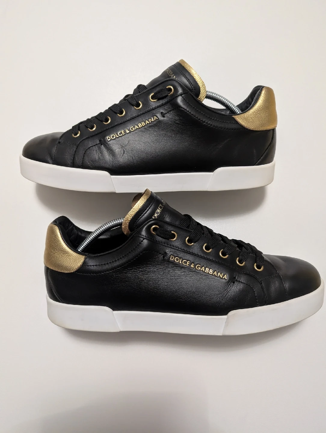 0 reviewsSelling a pair of Dolce & Gabbana trainers in black leather. size 10 They feature gold accents on the heel and eyelets. The trainers are in good condition and ready for a new home!