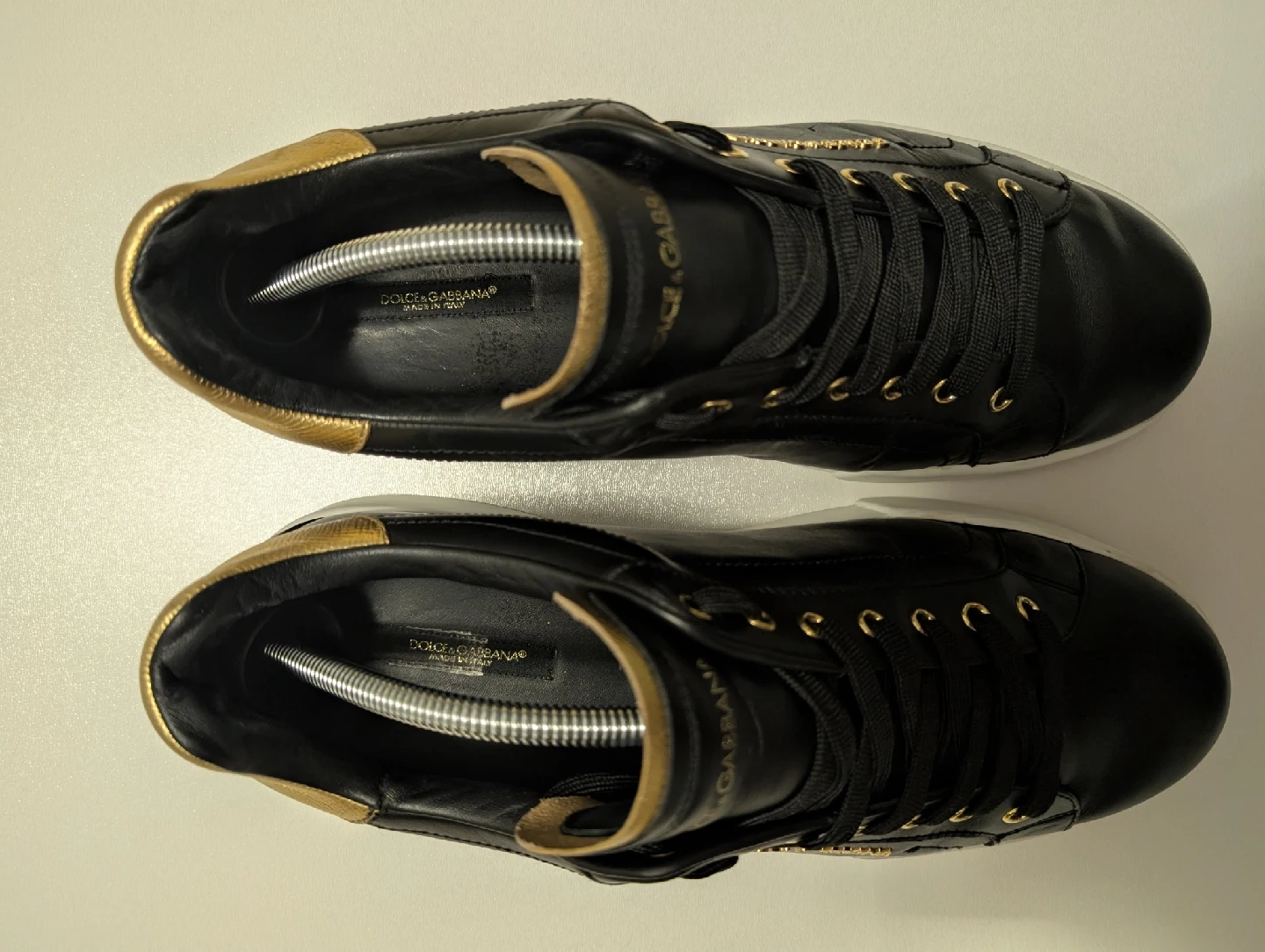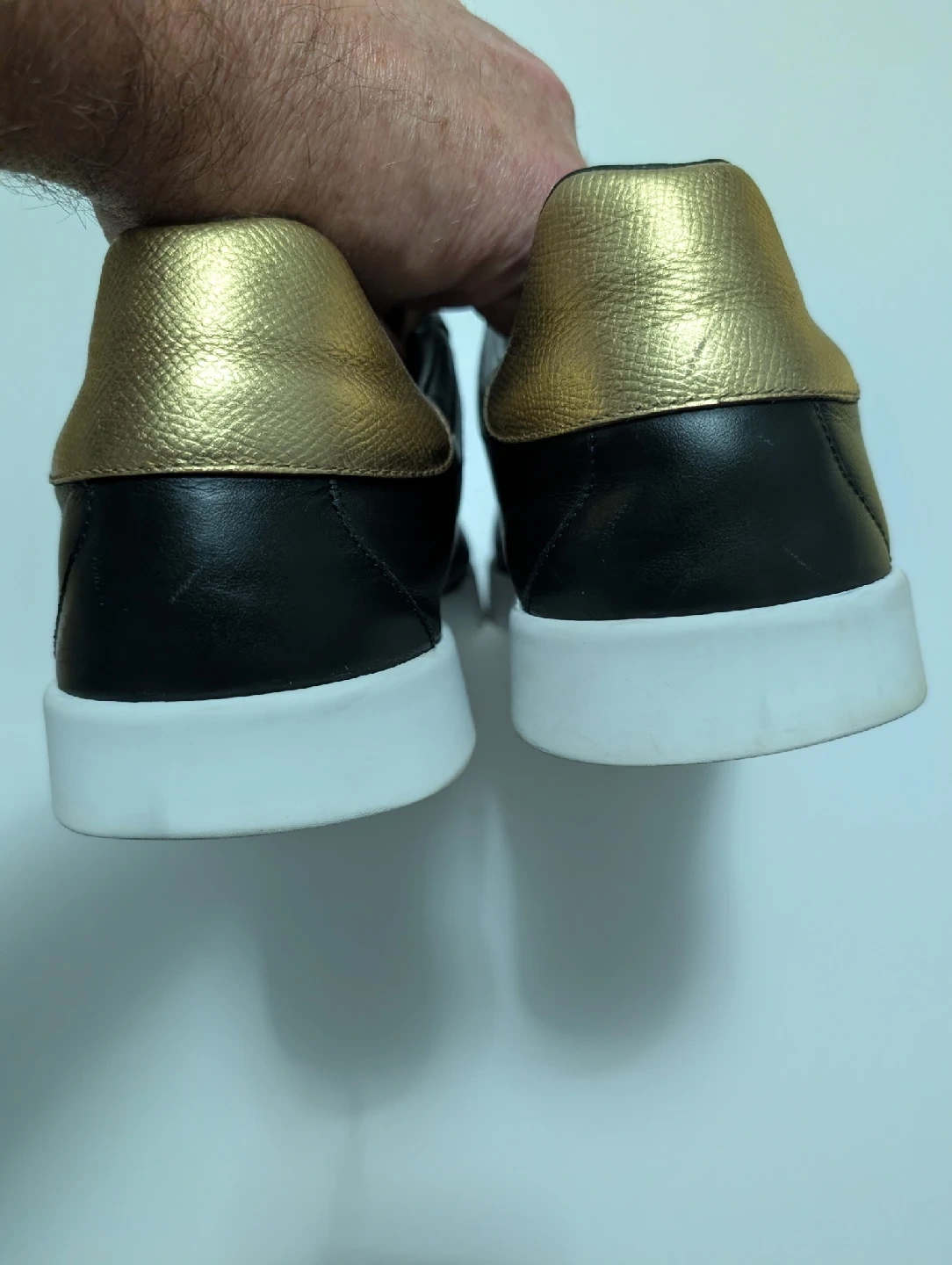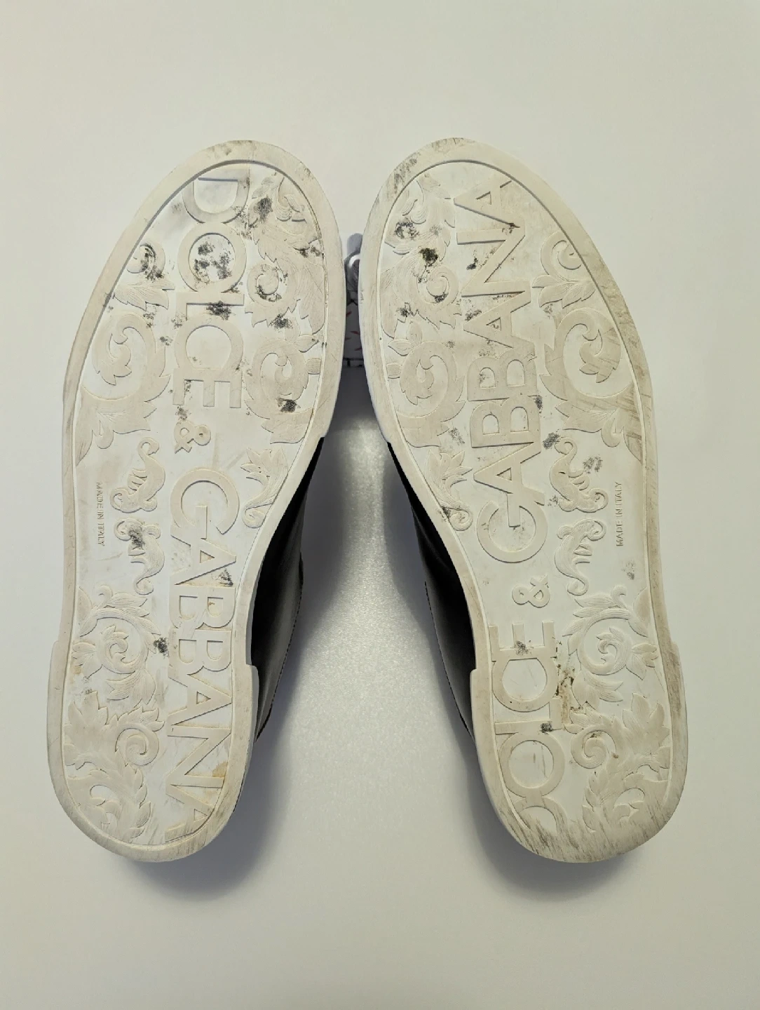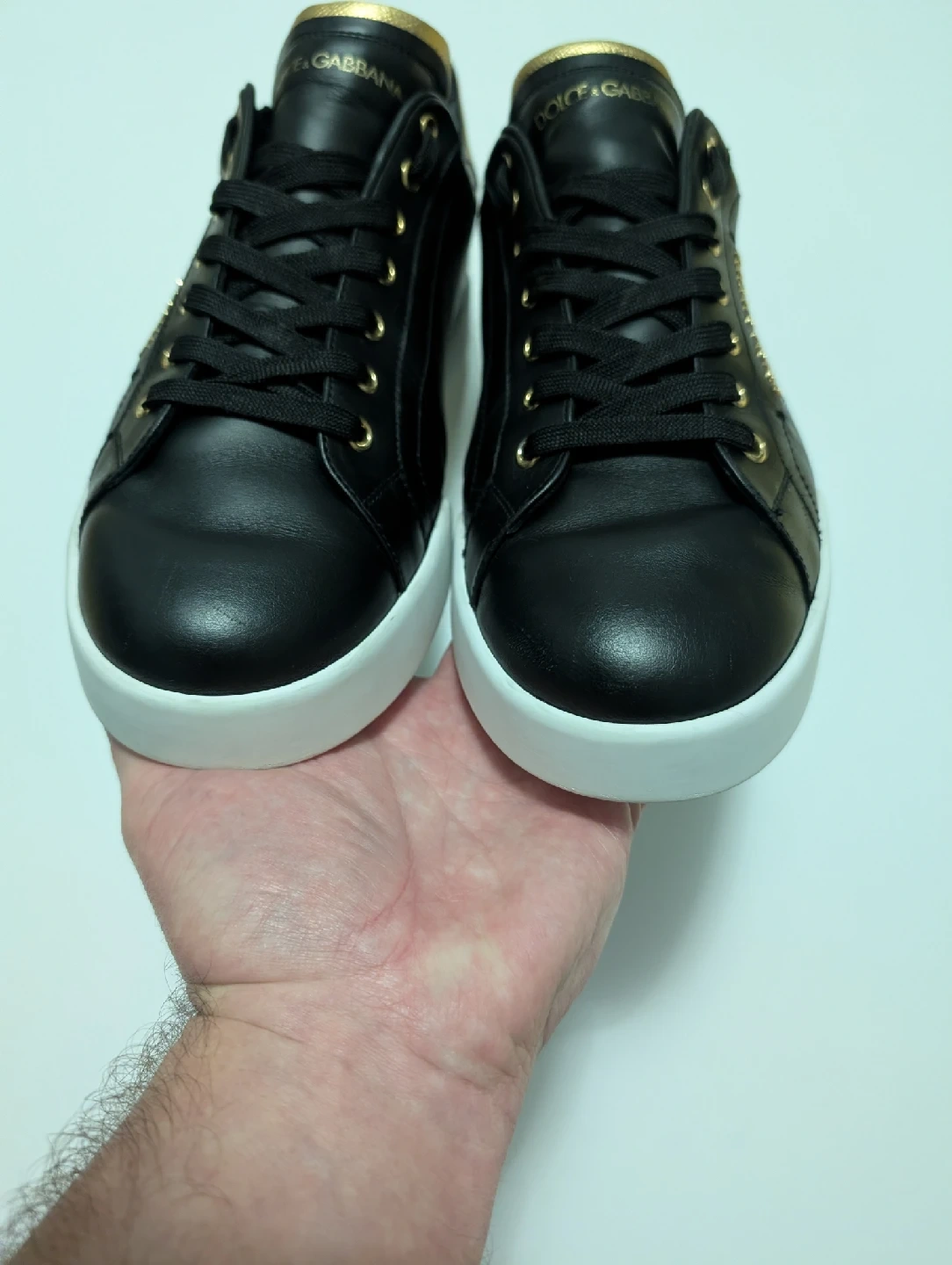 0 reviewsSelling a pair of Dolce & Gabbana trainers in black leather. size 10 They feature gold accents on the heel and eyelets. The trainers are in good condition and ready for a new home!