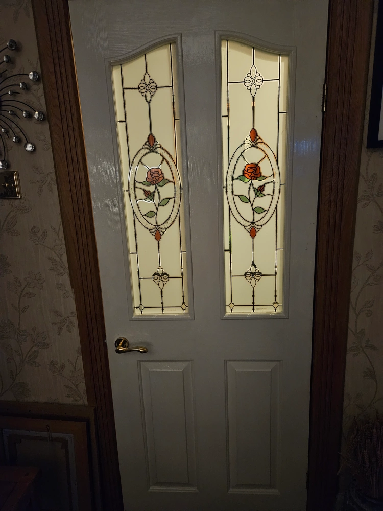 1 reviewx3 doors with colour etchings !lovely doors white with brass handles 1 door free due to small repair on hinge side