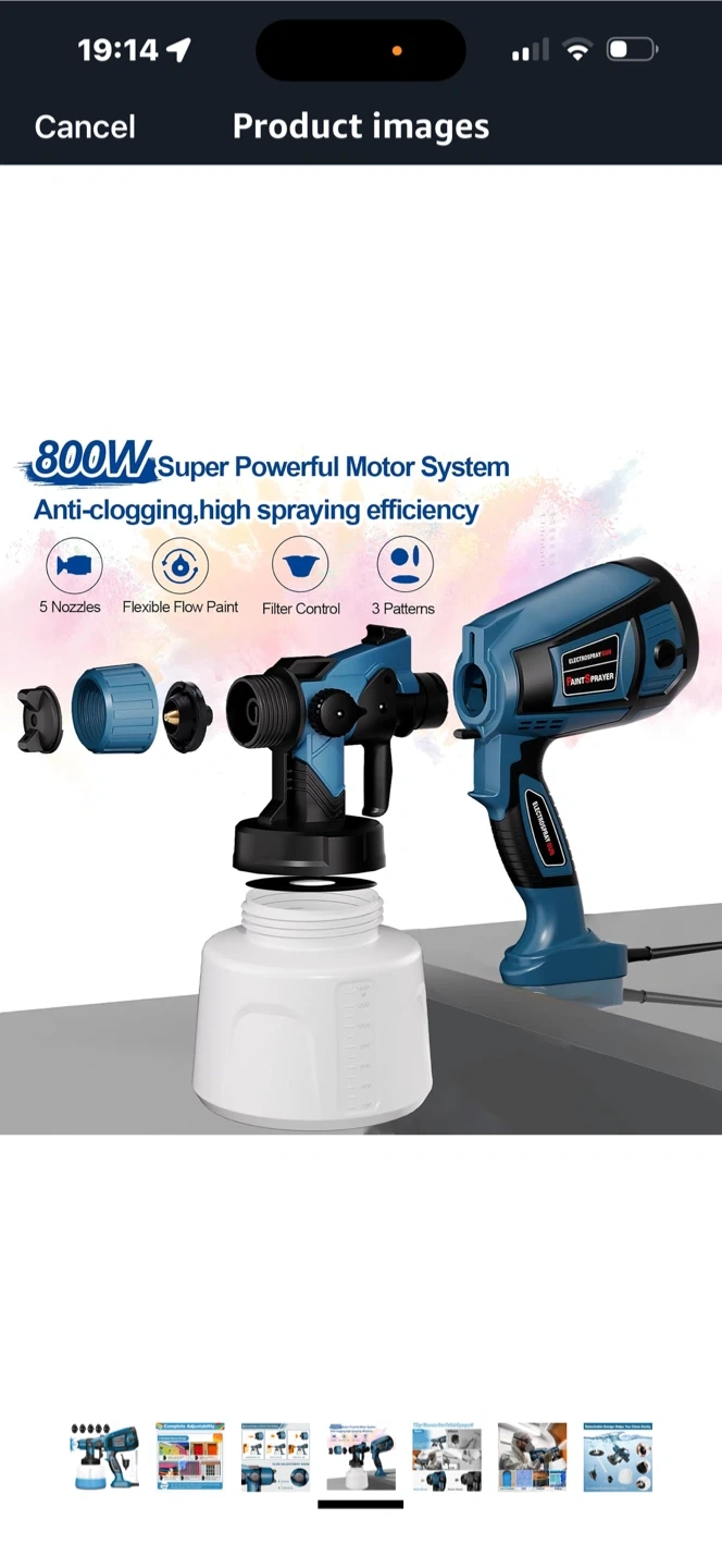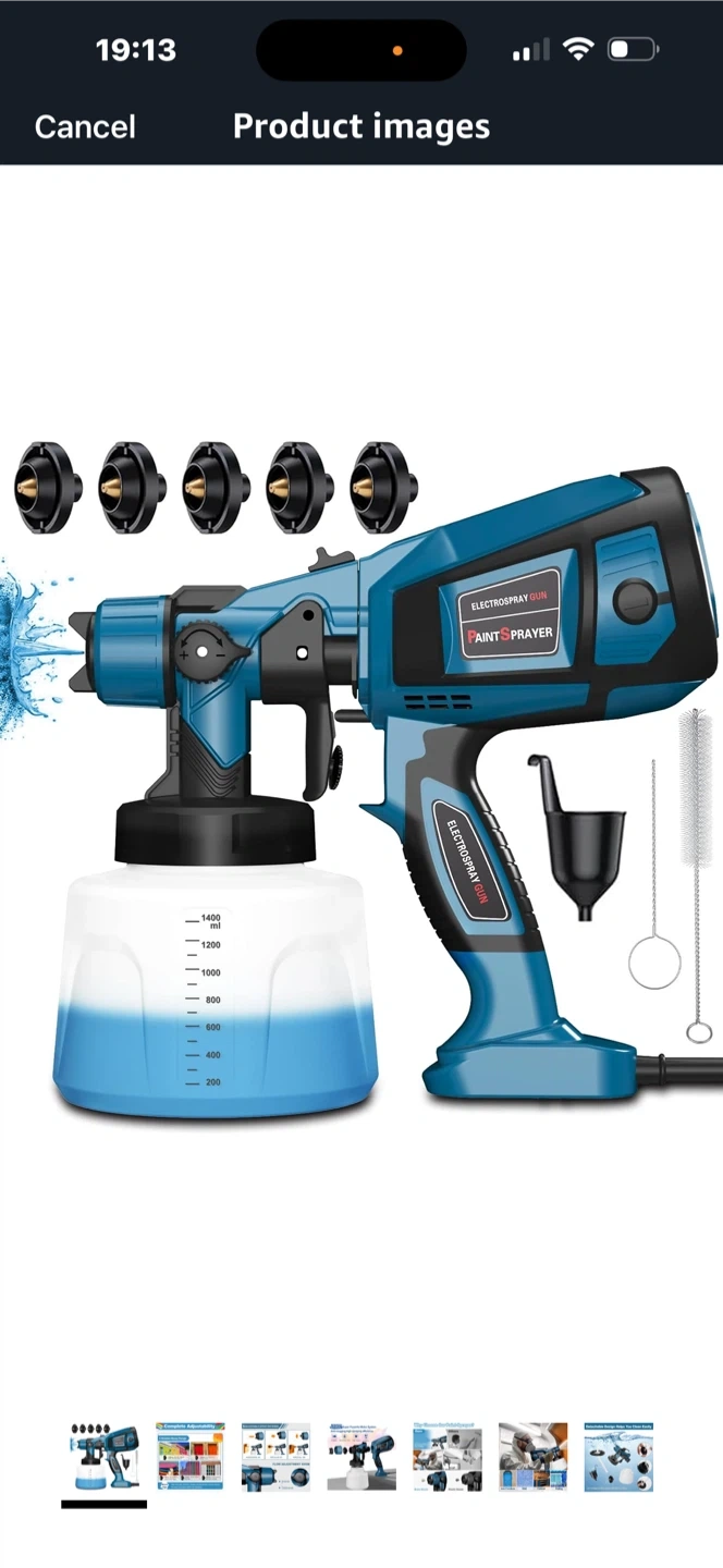14 reviewsThis Electrospray Gun Paint Sprayer features: - 5 Nozzles - Adjustable Spray Patterns - Flow Adjustment Knob - 800W Super Powerful Motor System - Anti-clogging, high spraying efficiency - Flexible Flow Paint - Filter Control - 3 Patterns - 1400ml High Capacity