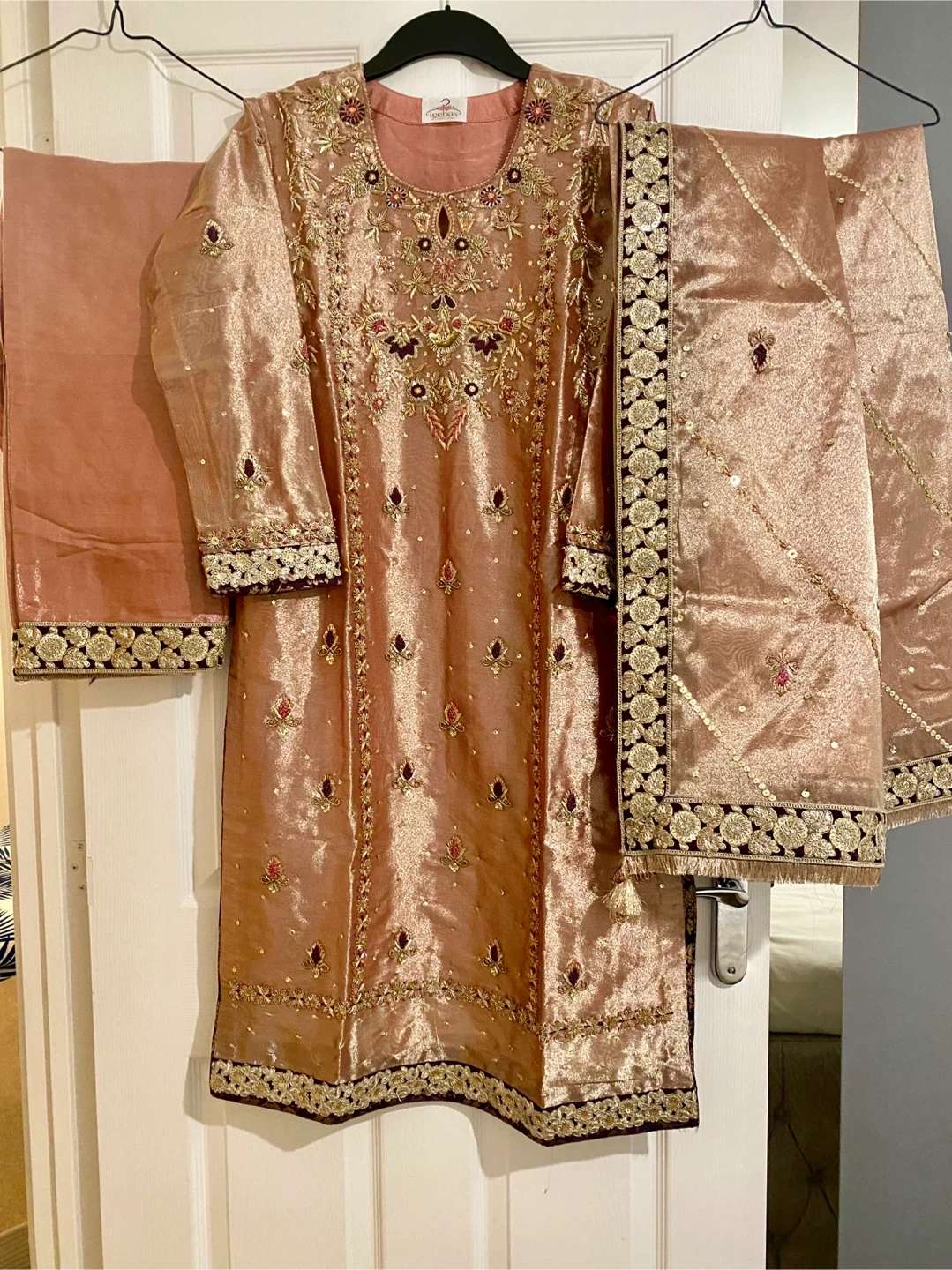 12 reviewsBeautiful suit in a lovely blush pink colour in very soft material.Features intricate embroidery and comes with a matching dupatta. Perfect for special occasions!