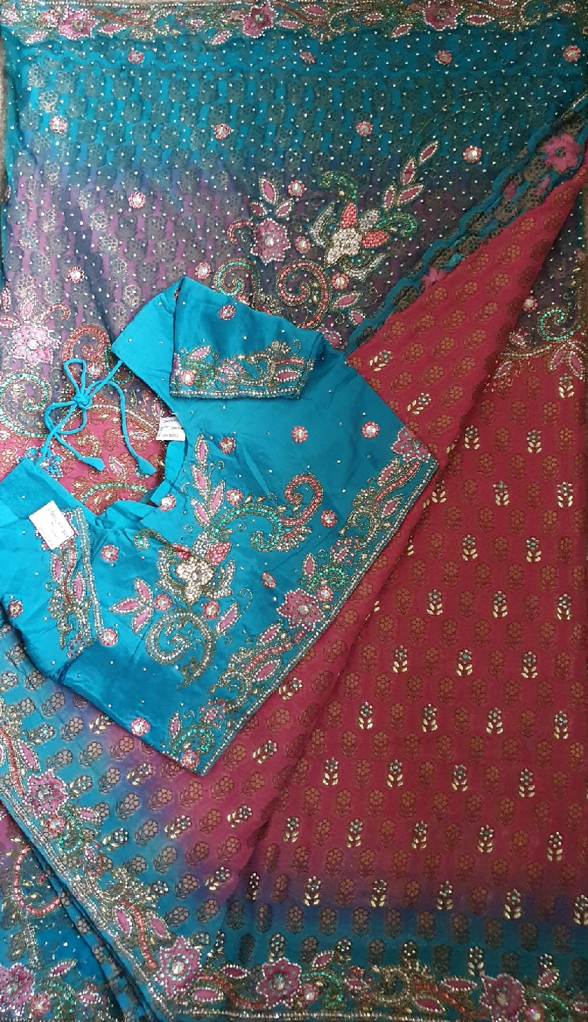 13 reviewsBrand new with tag on the beautiful heavily diamond embroidered half net saree. Standard size embroidered blouse. Already been reduced now selling at a bargain price Rrp £456 Theses pictures definitely doesn't do justice to this saree. Collection or can post for the cost of p&p No Offers Please
