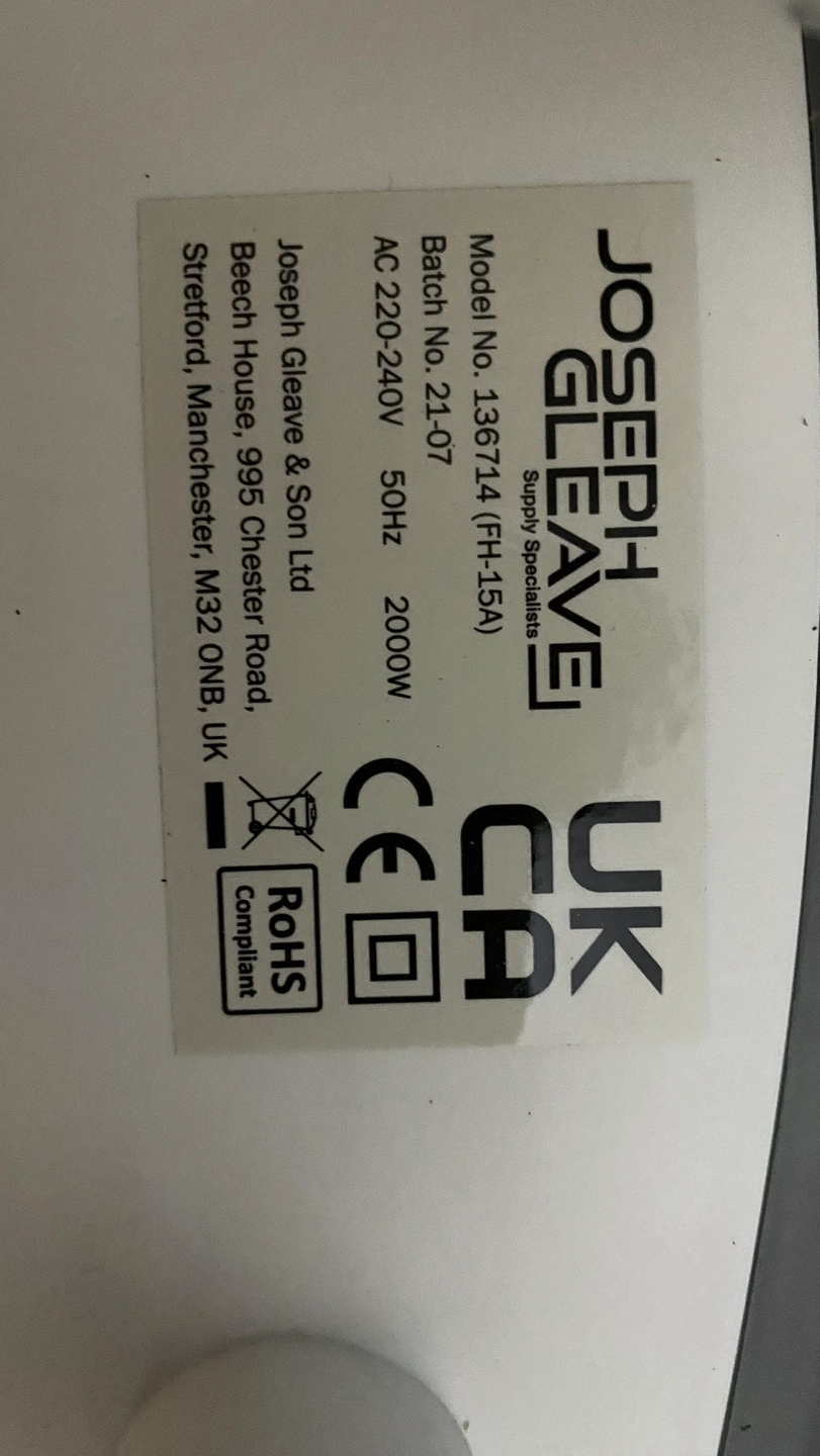 13 reviewsBrand new Use and good JOSEPH GLEAVEI Model No. 136714 (FH-15A) AC 220-240V 50Hz 2000W Collection from b12 Fan heater
