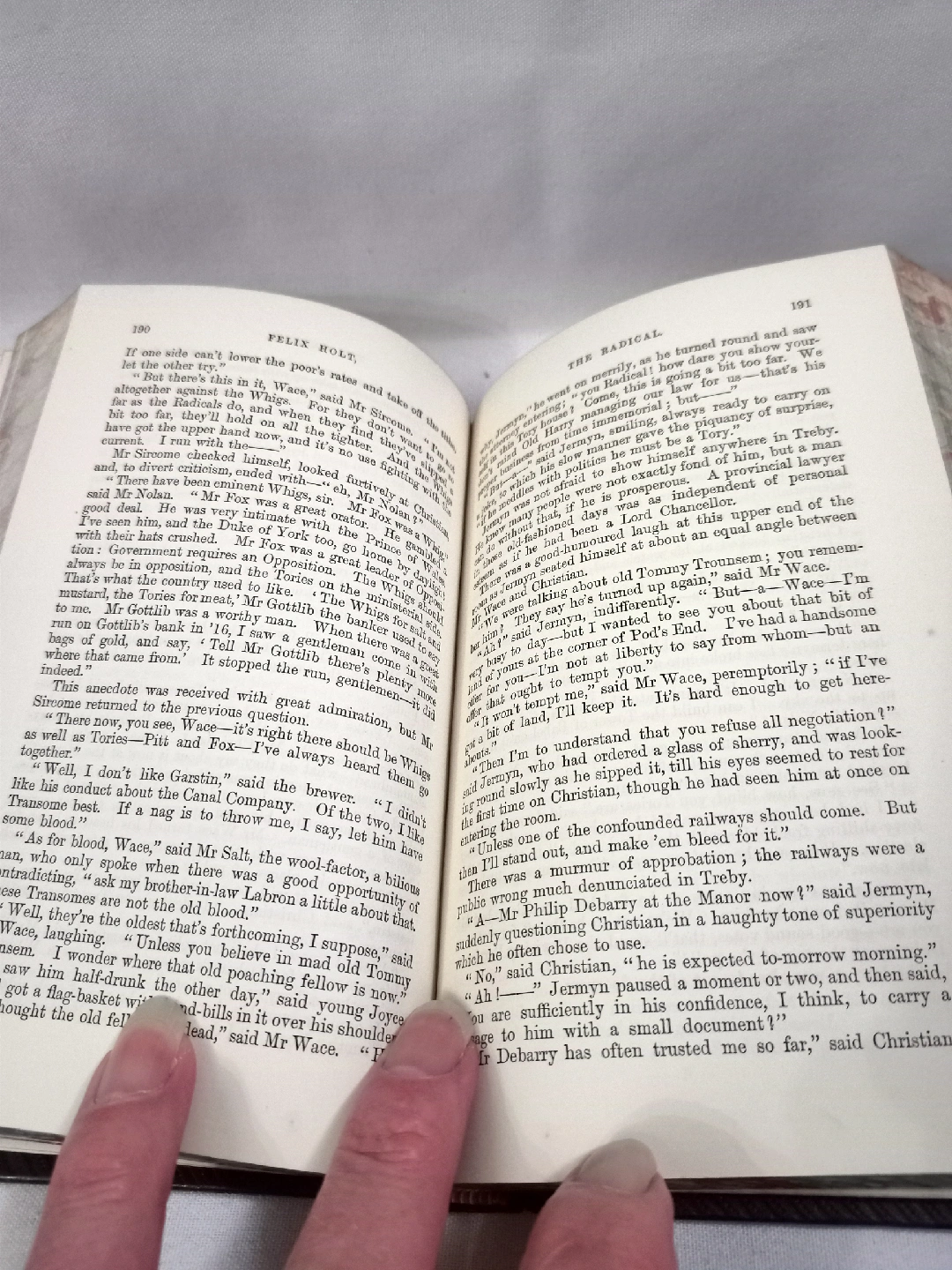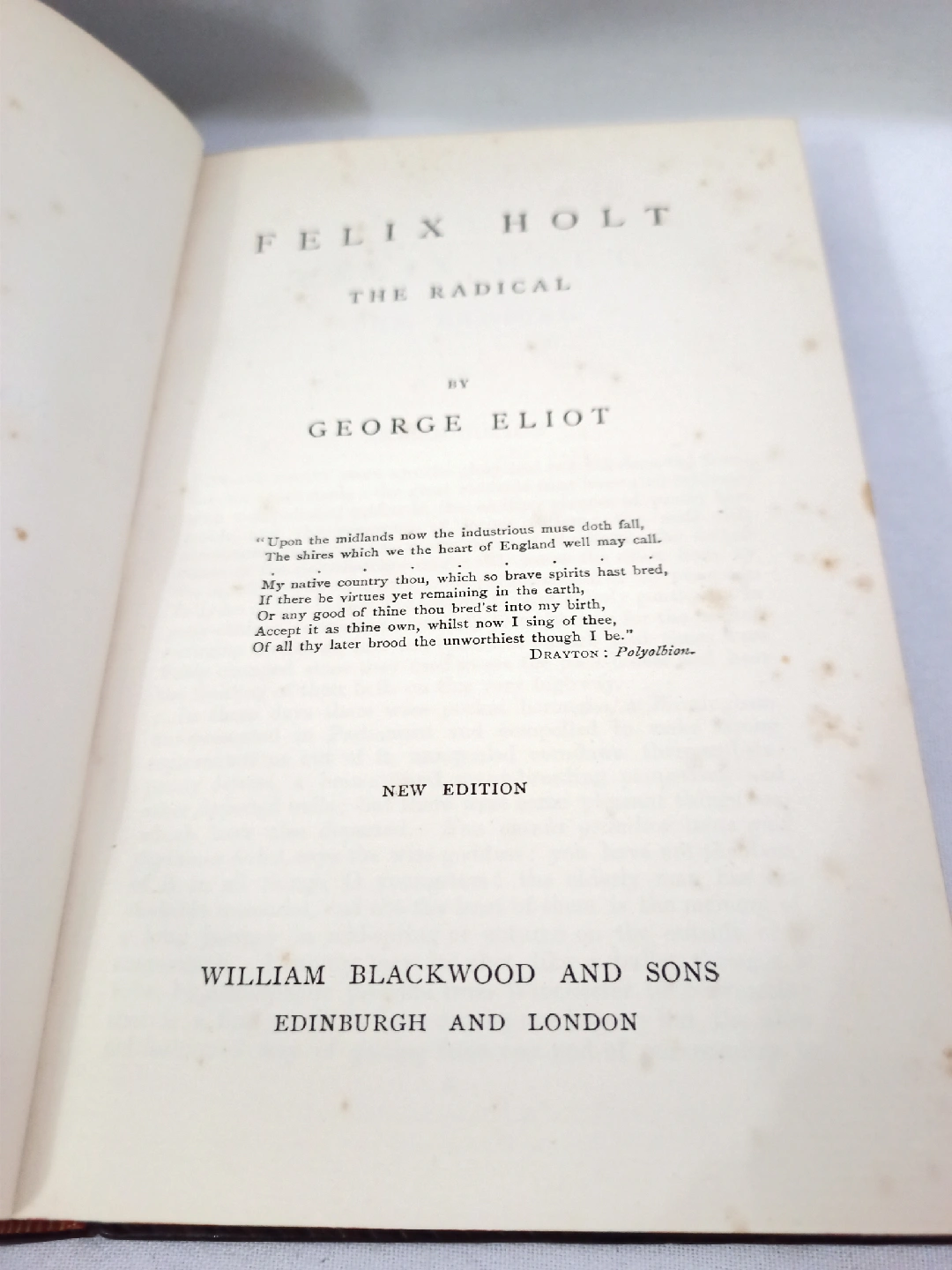 149 reviewsFELIX HOLT THE RADICAL GEORGE ELIOT NEW EDITION WILLIAM BLACKWOOD AND SONS HARDBACK LOVELY DECORATIVE SPINE FOXING TO EARLY PAGES DOESN'T AFFECT READING GOOD SHAPE OVERALL.