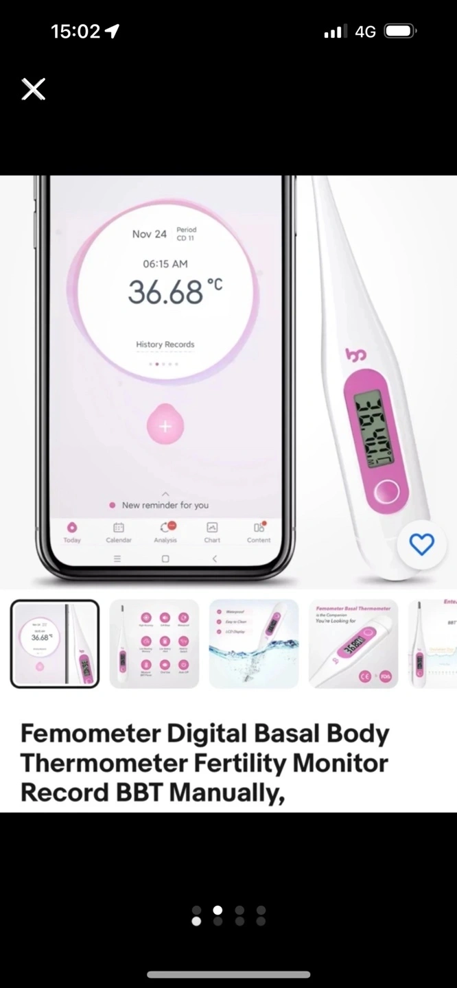 7 reviewsPink basal body thermometer. Waterproof and features a memory function. Highly accurate with a soft beep signal. New in box.