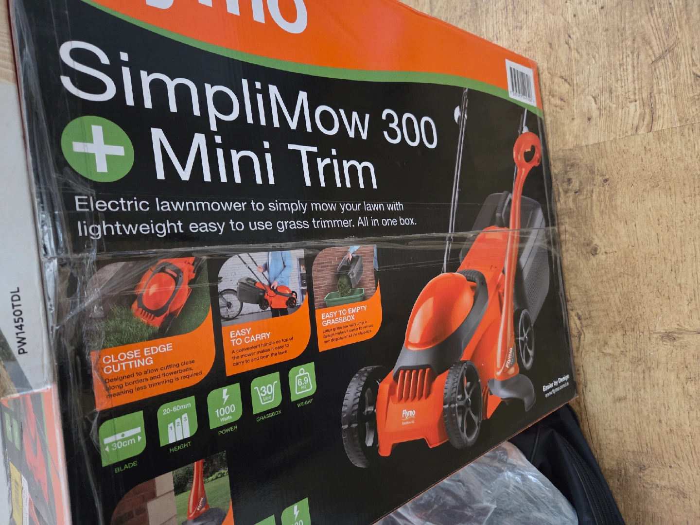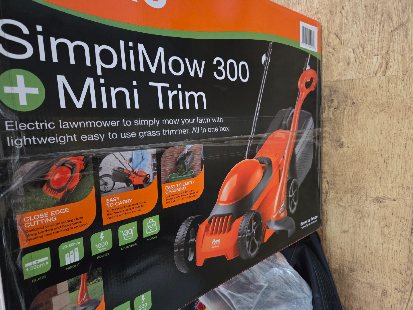 30 reviewsElectric lawnmower to simply mow your lawn with lightweight easy to use grass trimmer, all in one box - Close edge cutting: Designed to allow cutting close along borders and flowerbeds, meaning less trimming is required - Easy to carry: A convenient handle on top of the mower makes it easier to carry to and from the lawn - Easy to empty grassbox: Large grassbox collects more grass so it needs emptying less often and graphics to show when it's full