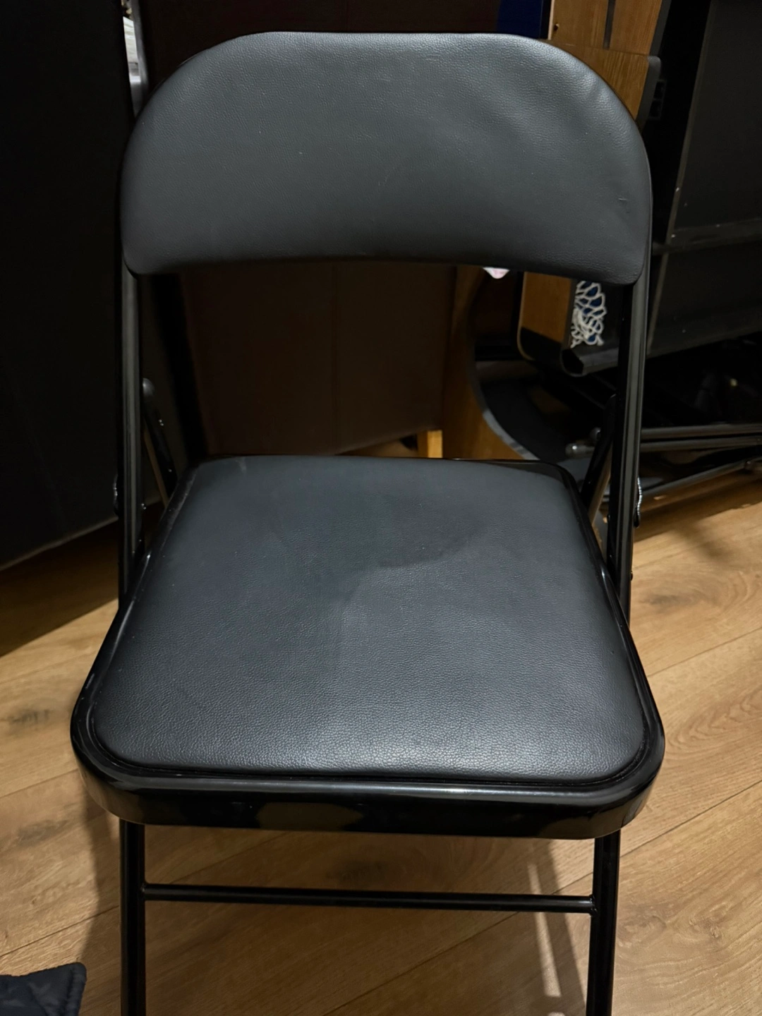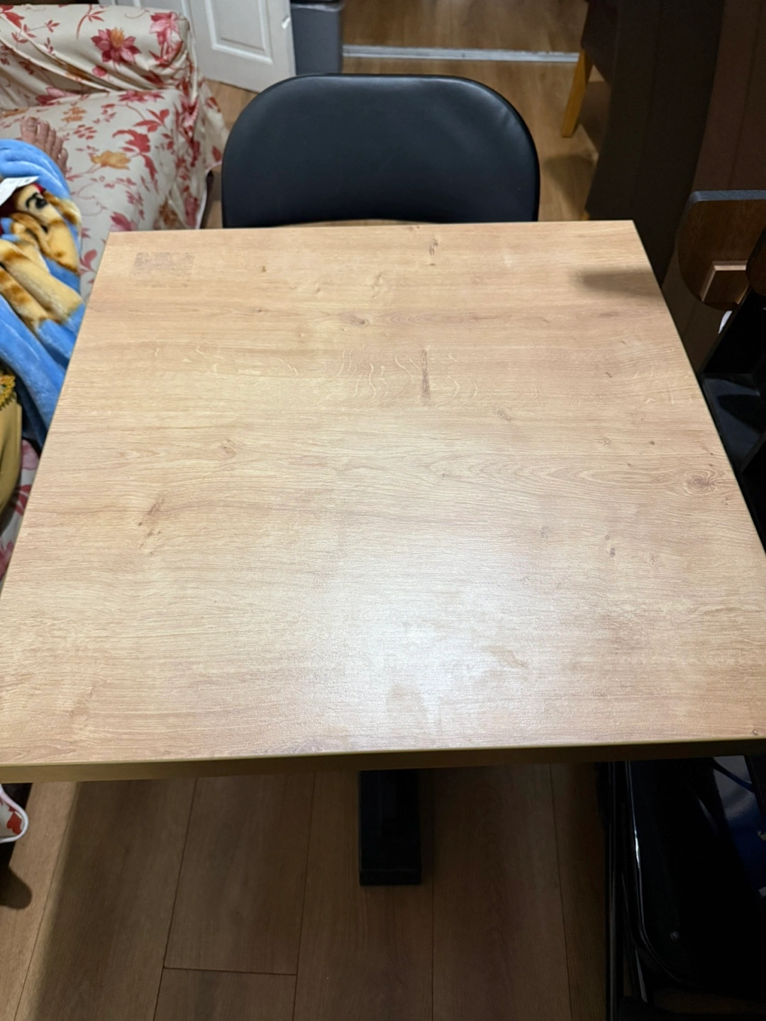 4 reviewsSelling a handy folding table and chair set. Perfect for small spaces or when you need extra seating! The table has a light wood-look top and the chair is black with a padded seat. Easy to fold away for storage when not in use