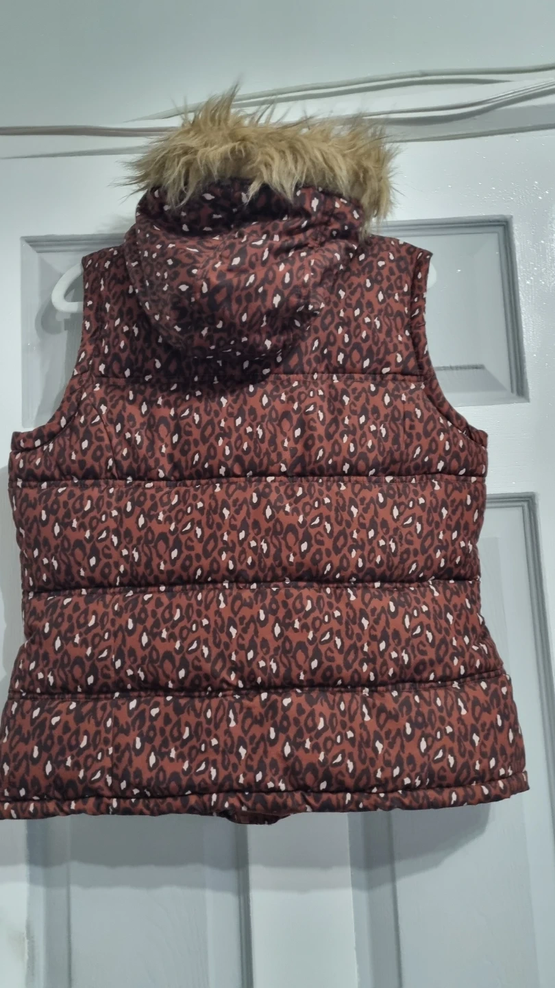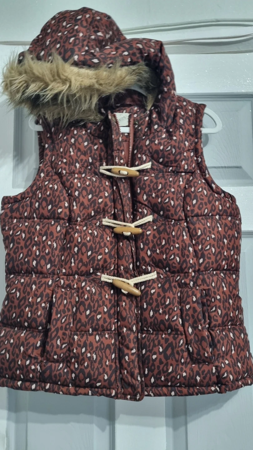 24 reviewsHere's a lovely Georget leopard print padded gilet, perfect for layering! It features a hood with a faux fur trim and toggle fastenings. Great for keeping your little one warm and stylish.