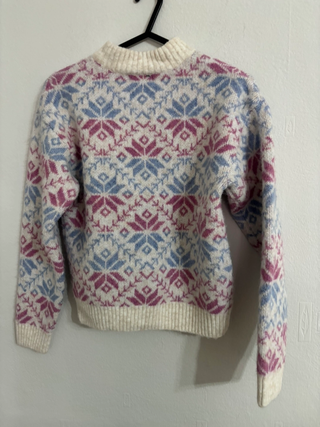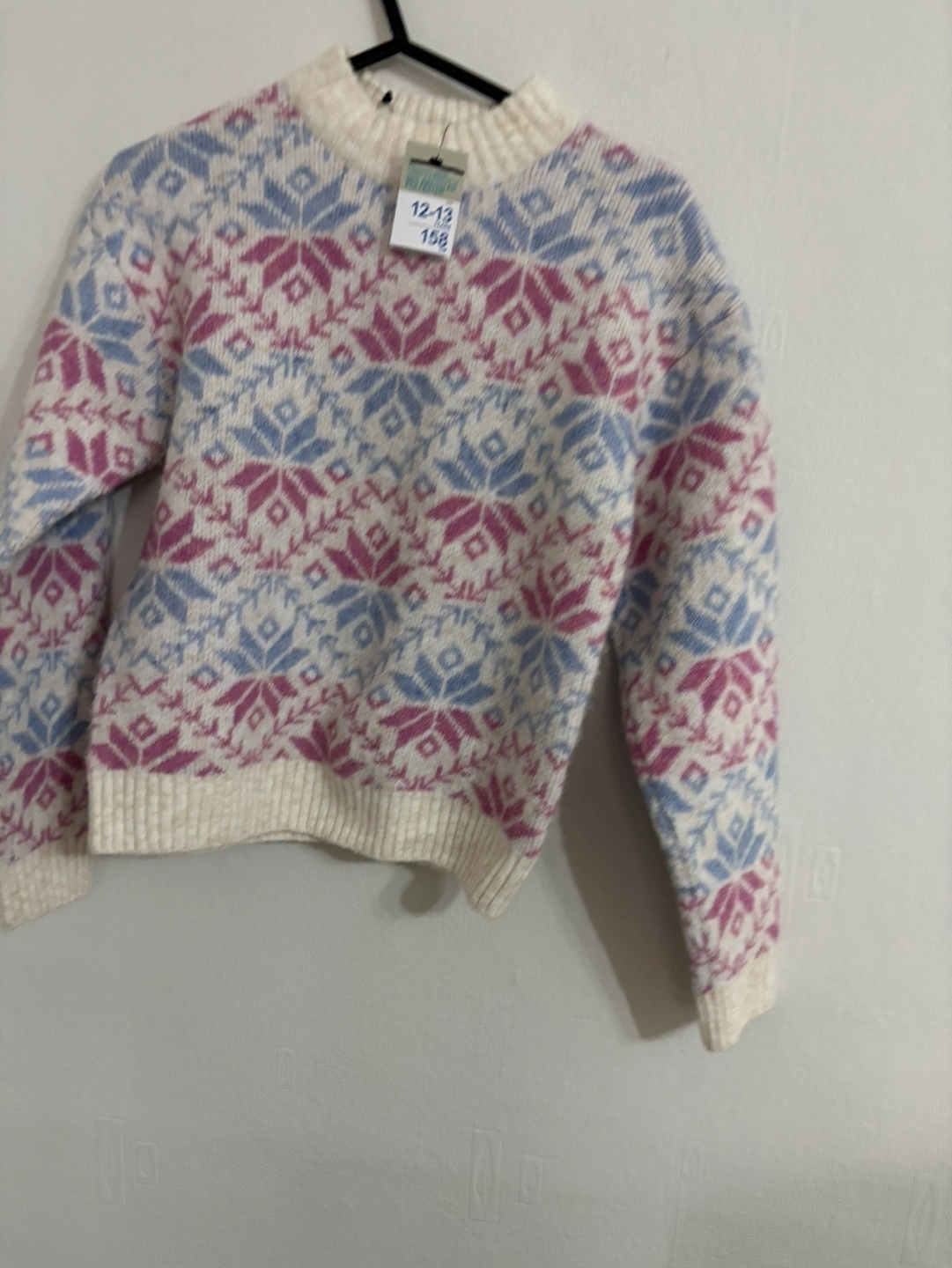 1 reviewA lovely girls' jumper with a snowflake pattern. It's a white base with purple and blue snowflakes all over. The size is 12-13.