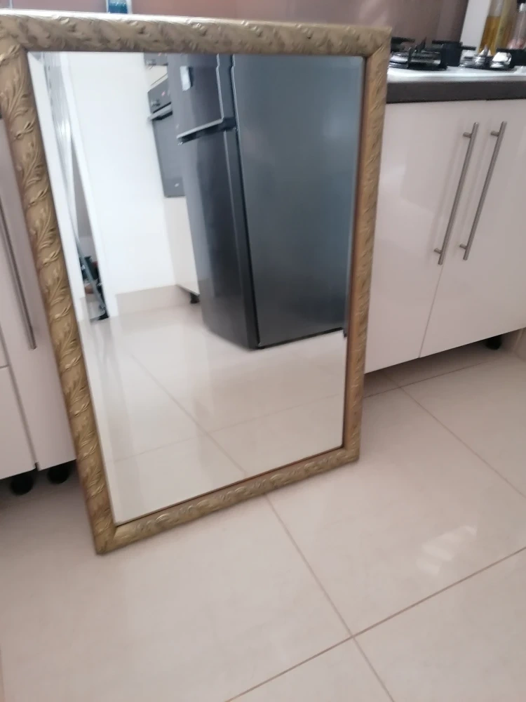 1 reviewA lovely gold-framed mirror, perfect for adding a touch of elegance to any room. It's in good condition and ready to find a new home
