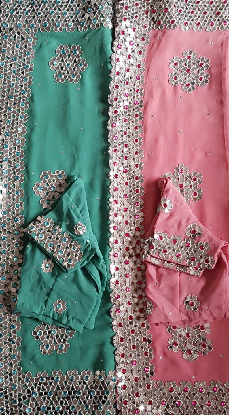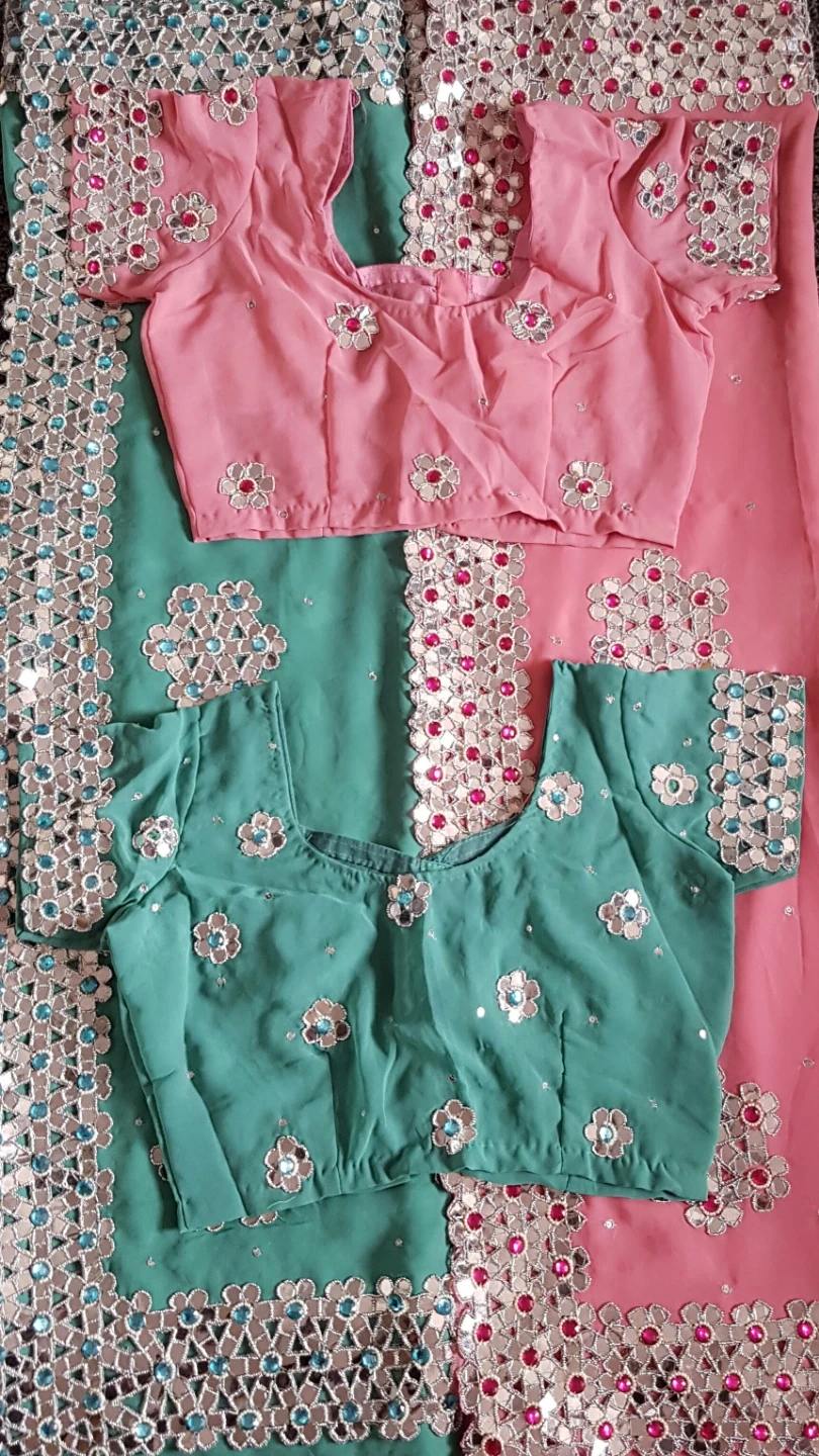 13 reviewsBeautiful saree in two lovely colours, green and pink, complete with a matching blouse. The saree and blouse are embellished with mirror like details, making it perfect for a special occasion. The material feels nice to the touch and drapes well. They are a stunning piece's that's sure to turn heads! Selling at a bargain price Only 2 colours left. Standard blouse size, Rrp £195. COLLECTION OR CAN POST FOR THE COST OF P&P NO OFFERS PLS