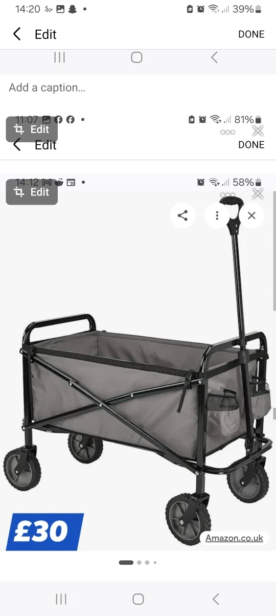2 reviewsSelling a handy folding garden trolley cart! It's great for carrying bits and bobs around the garden or for trips to the park. It's in good condition and ready for a new home. Originally bought for £30.