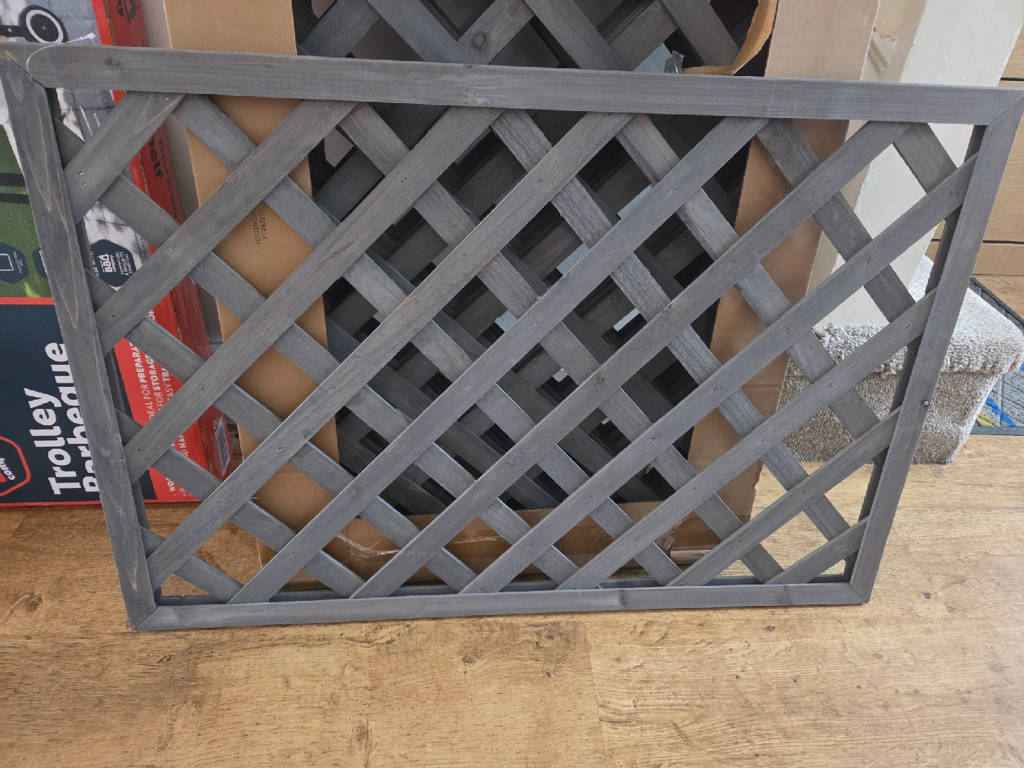 30 reviewsSelling a grey wooden garden trellis. It's brand new and ready to add a touch of charm to your garden or outdoor space. Perfect for climbing plants or as a decorative feature 6 available £10 each