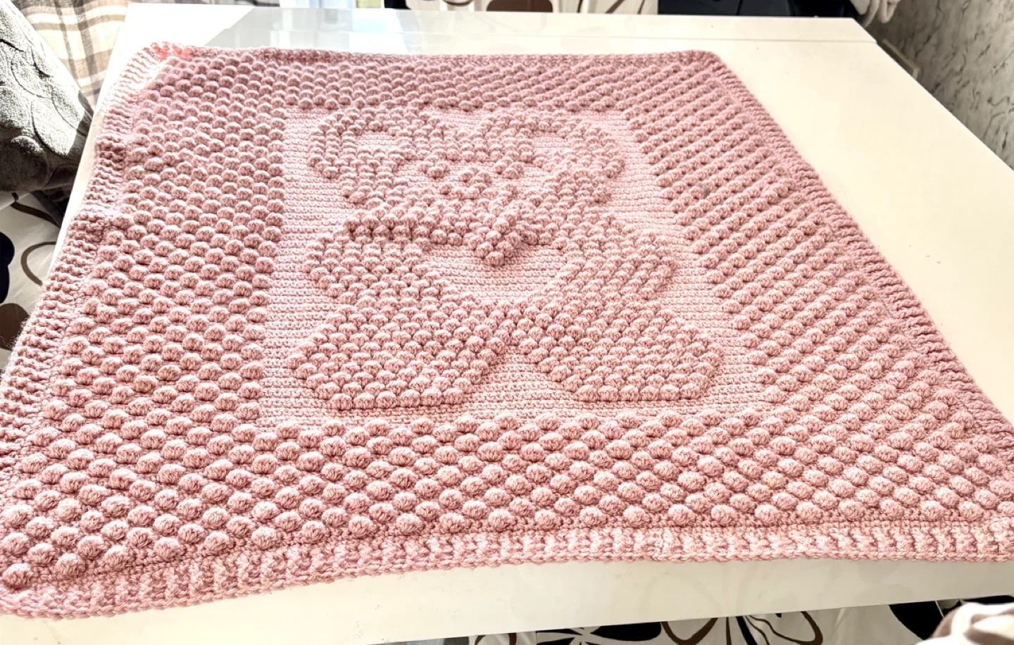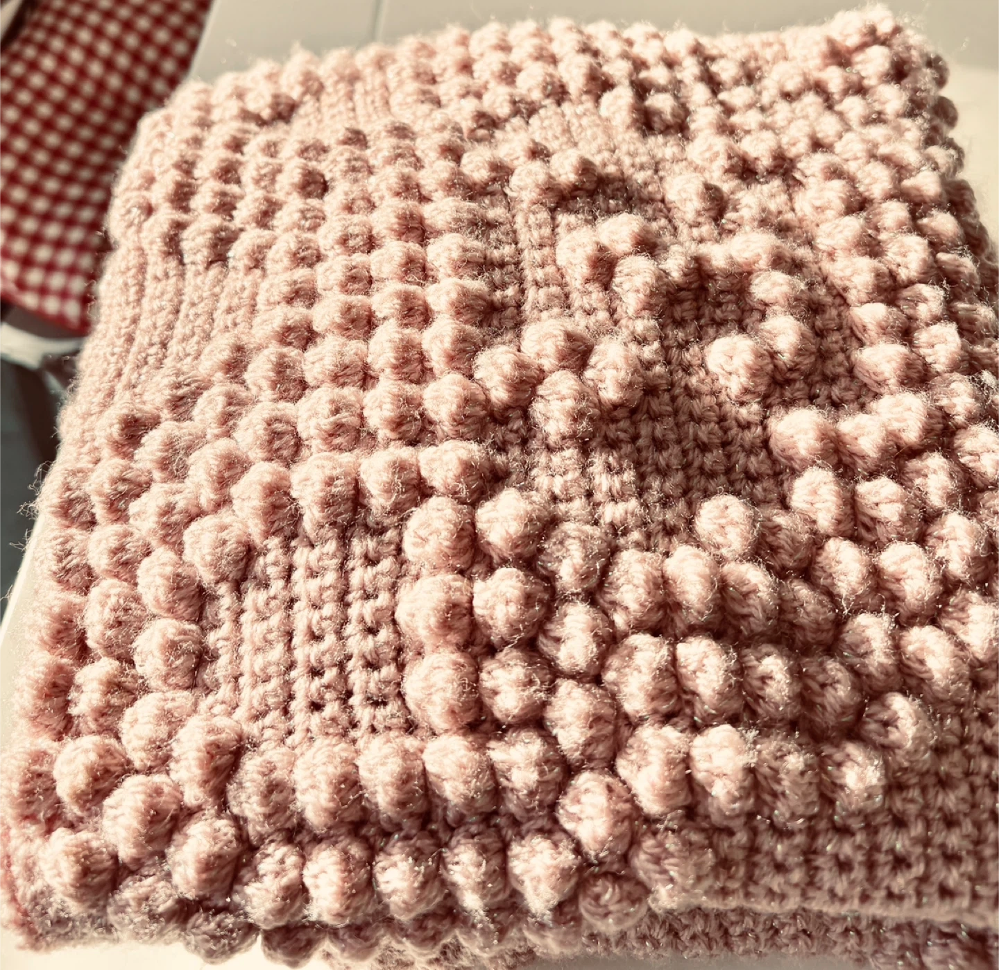 9 reviewsA lovely, handmade knitted blanket in a soft pink colour. It features a unique bobble texture, making it extra cosy and warm. Lovingly hand knitted photos don’t do it justice appropriately 28 x30 inches