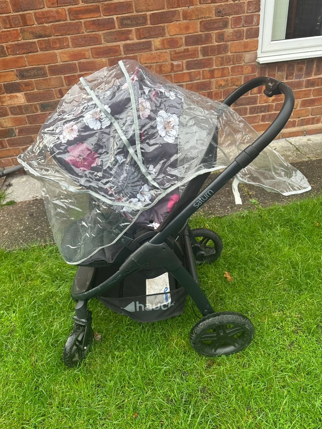 0 reviewsSelling a Hauck Saturn stroller in a lovely floral design. It comes with a rain cover to keep your little one dry on those drizzly days. It's in good condition and ready for a new home!