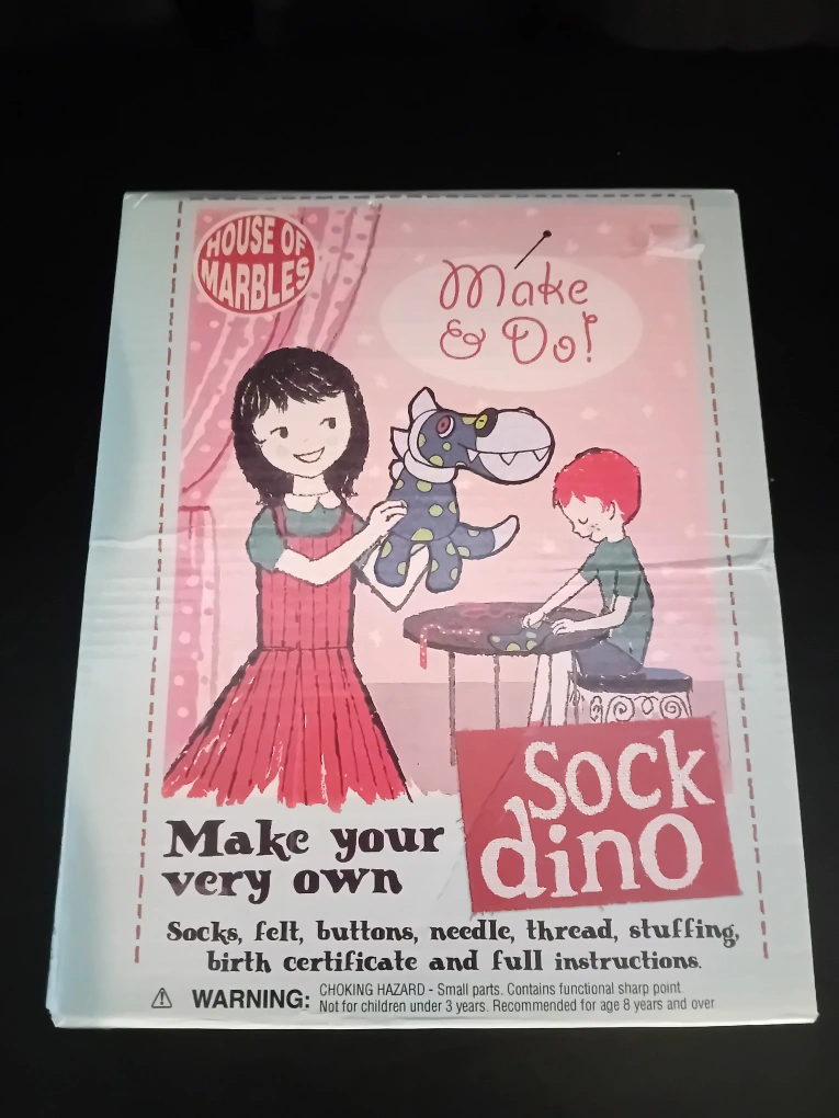0 reviewsGet crafty with this House of Marbles 'Make & Do!' Sock Dino kit! It's brand new and ready to be made into your very own sock dinosaur. The kit includes everything you need: socks, felt, buttons, needle, thread, stuffing, a birth certificate, and full instructions. Recommended for ages 8 and over
