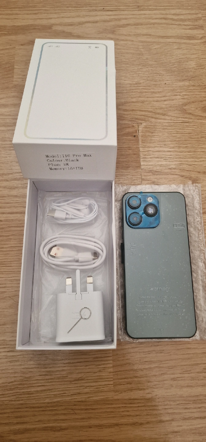 7 reviewsI'm selling an I16 Pro Max in black with 16+1TB of memory. It comes with its original box and included components such as a UK plug, charger & clear case. only £195.00 ideal Christmas present 🎁 NOTE-JAP VERSION.