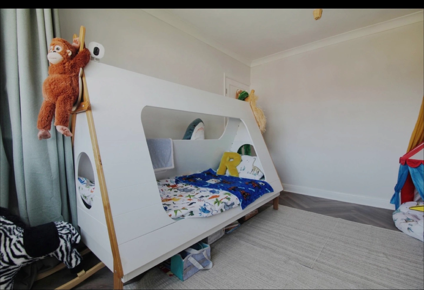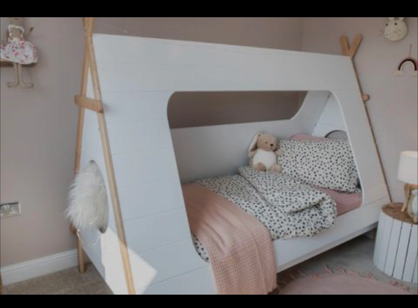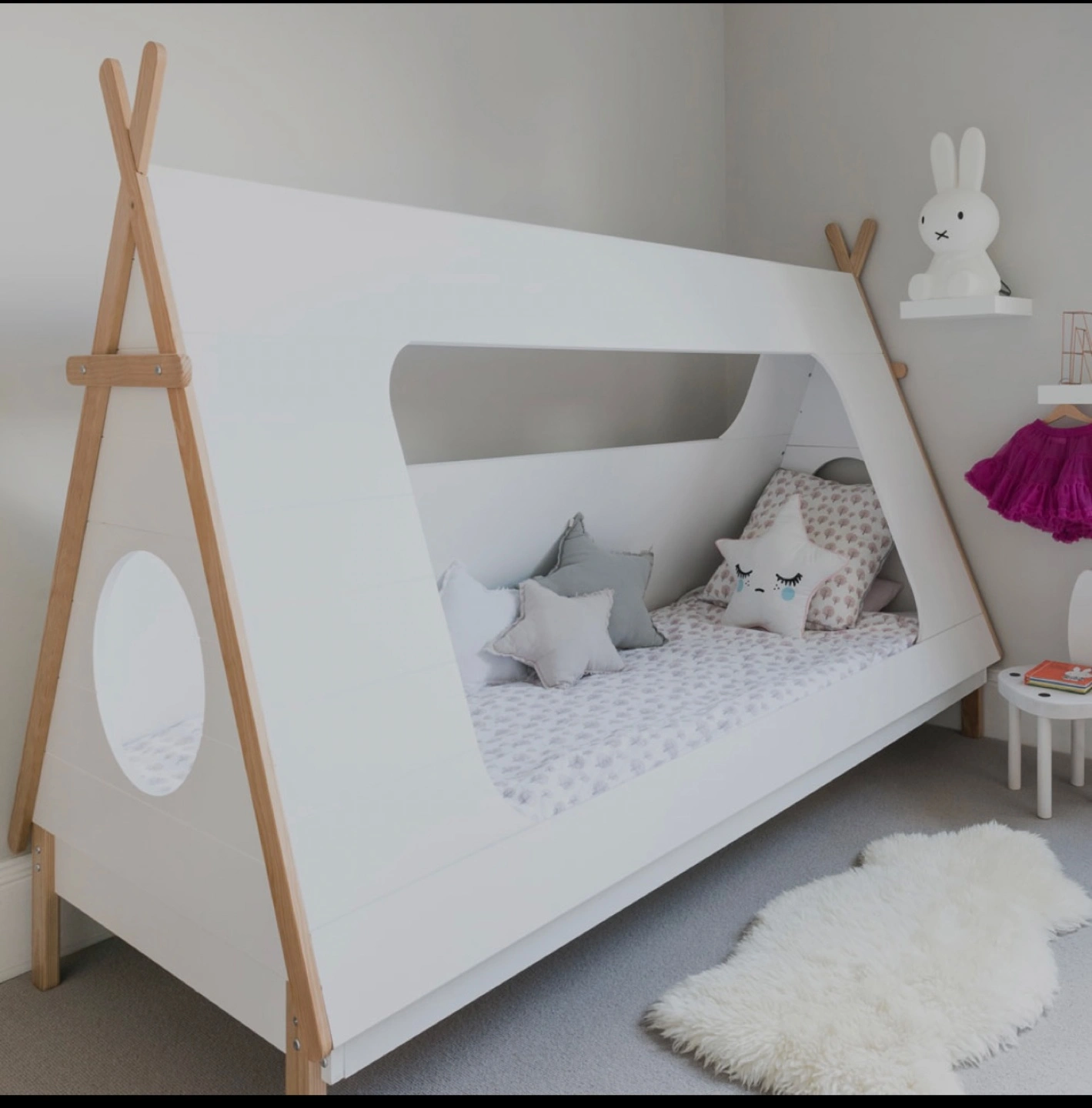 Show allWooden bunk bed and mattress