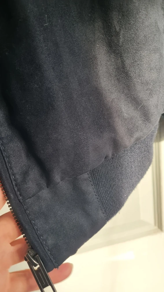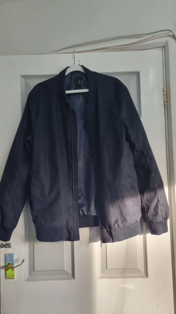 24 reviewsHere's a smart suedeJasper Conran bomber jacket in size medium. It's a stylish navy colour and would be perfect for layering. Feel free to ask any questions!