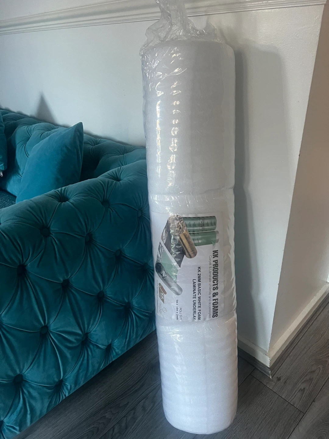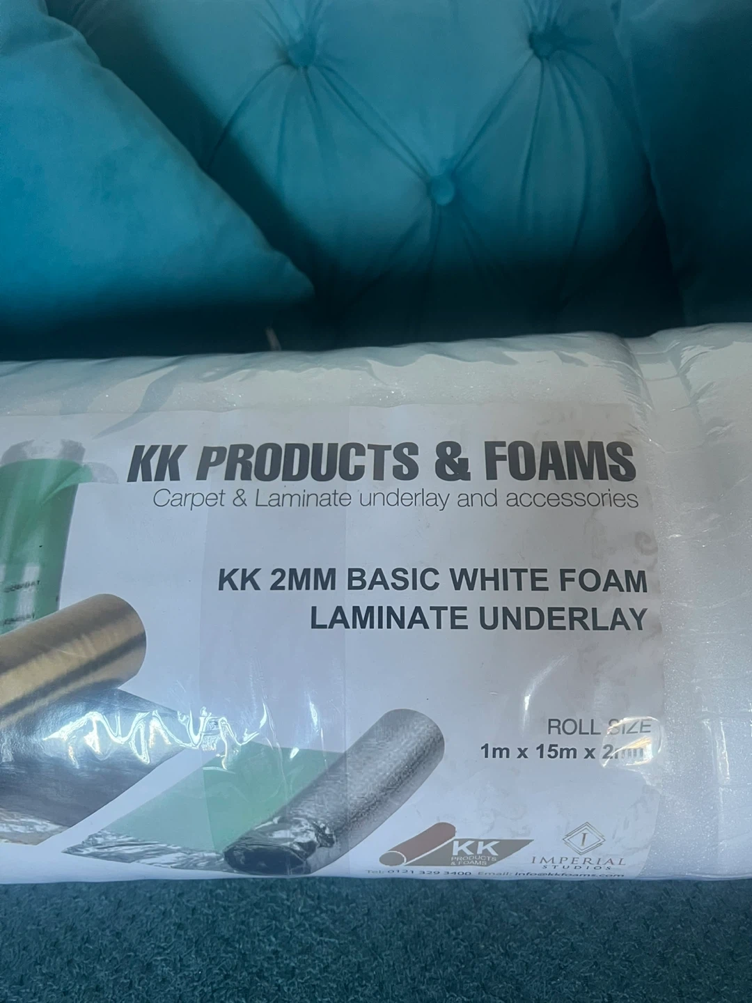 1 reviewI'm selling a brand new roll of KK 2mm Basic White Foam Laminate Underlay. It's perfect for carpet and laminate underlay and accessories. The roll size is 1m x 15m x 2mm