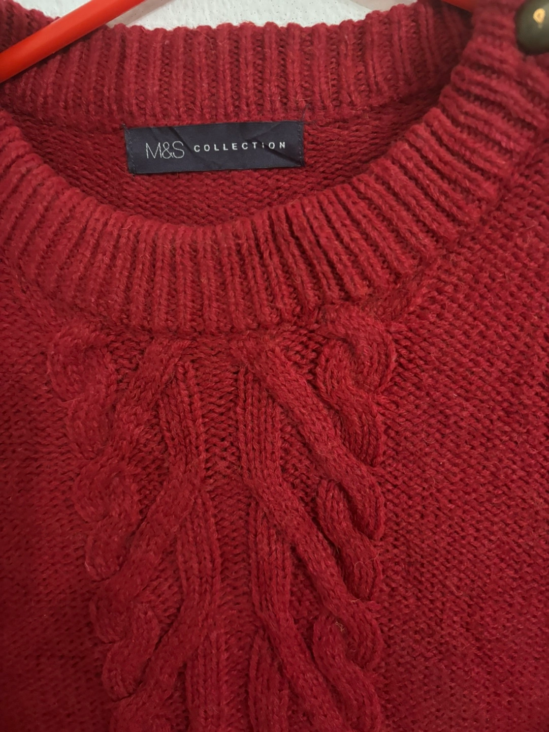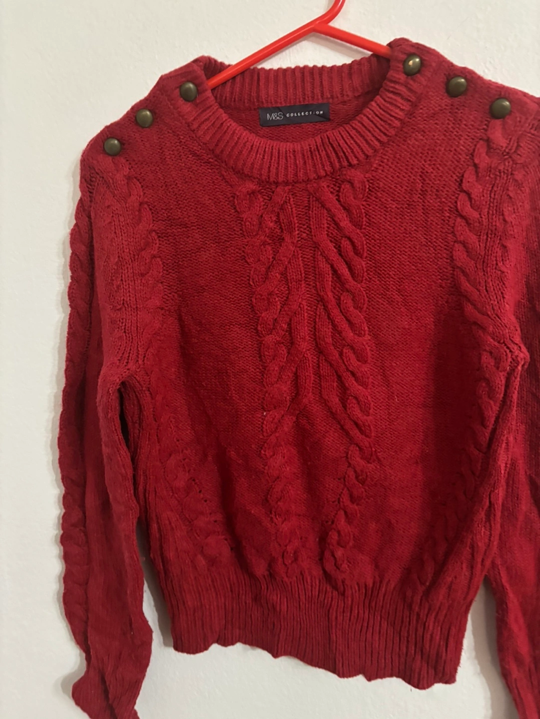 1 reviewA lovely red cable knit jumper from M&S Collection! It's in great condition and ready for a new home. Perfect for keeping cosy on chilly days. The material is soft and comfortable, making it a joy to wear. A stylish addition to any wardrobe!