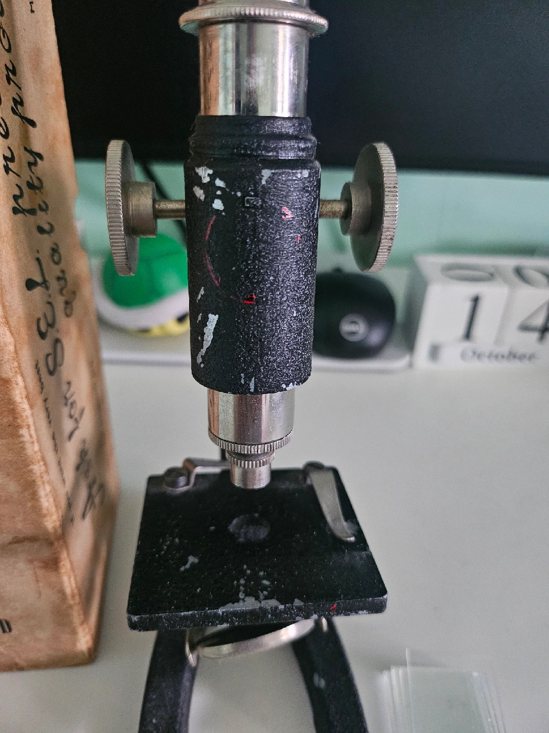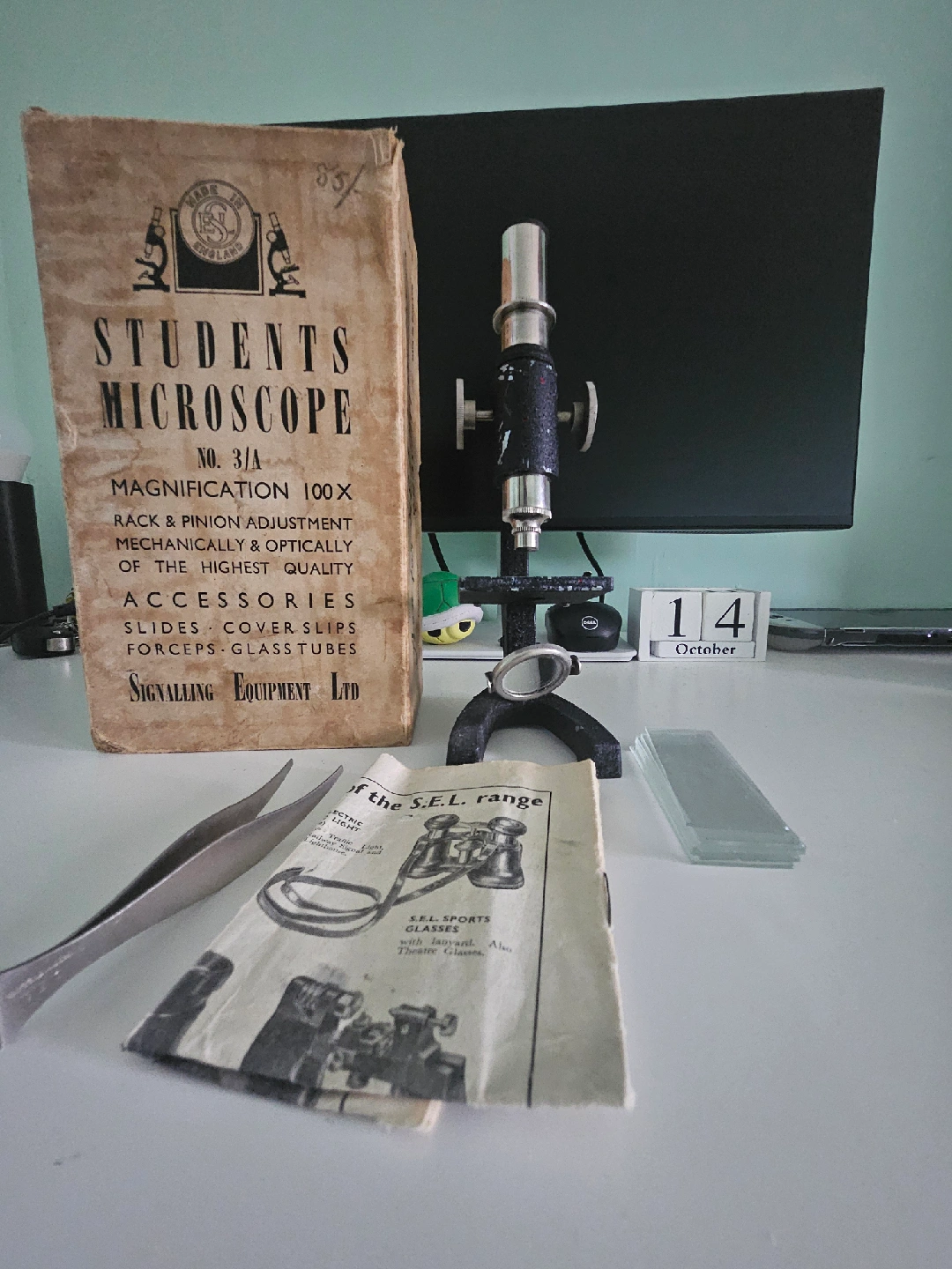 3 reviewsSelling an old fashioned microscope Really old fashioned, it uses reflected light of a mirror to illuminate the slides I have never used it, the microscope had some marks and stuff on it but not from me Comes with glass slides and forceps Collection only from B30 Stirchley