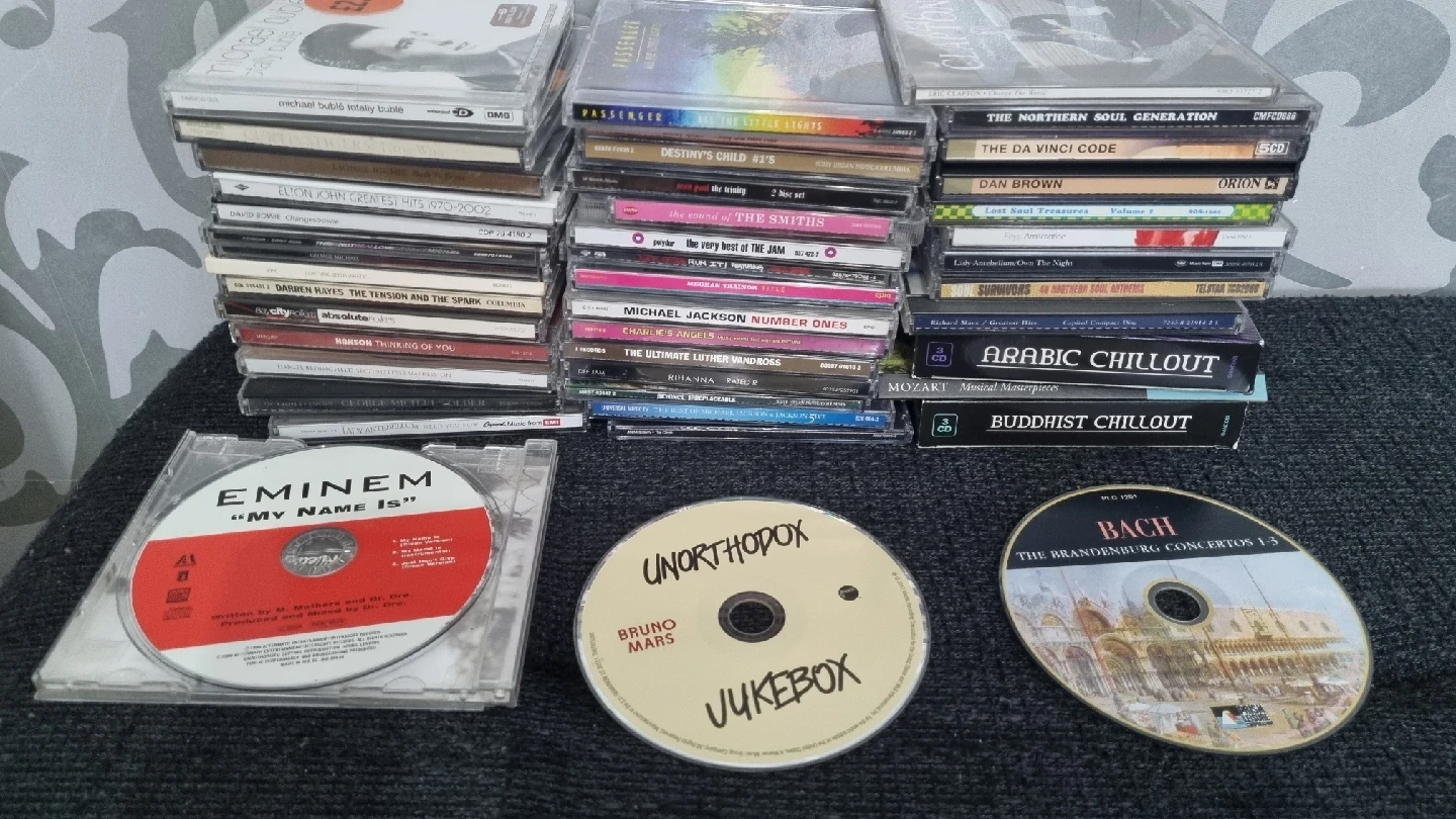 24 reviewsSelling a mixed bundle of CDs featuring various artists and genres. Includes titles from Michael Bublé, Passenger, The Smiths, Michael Jackson, Eminem, Bruno Mars, Bach, and many more! A great collection for any music lover