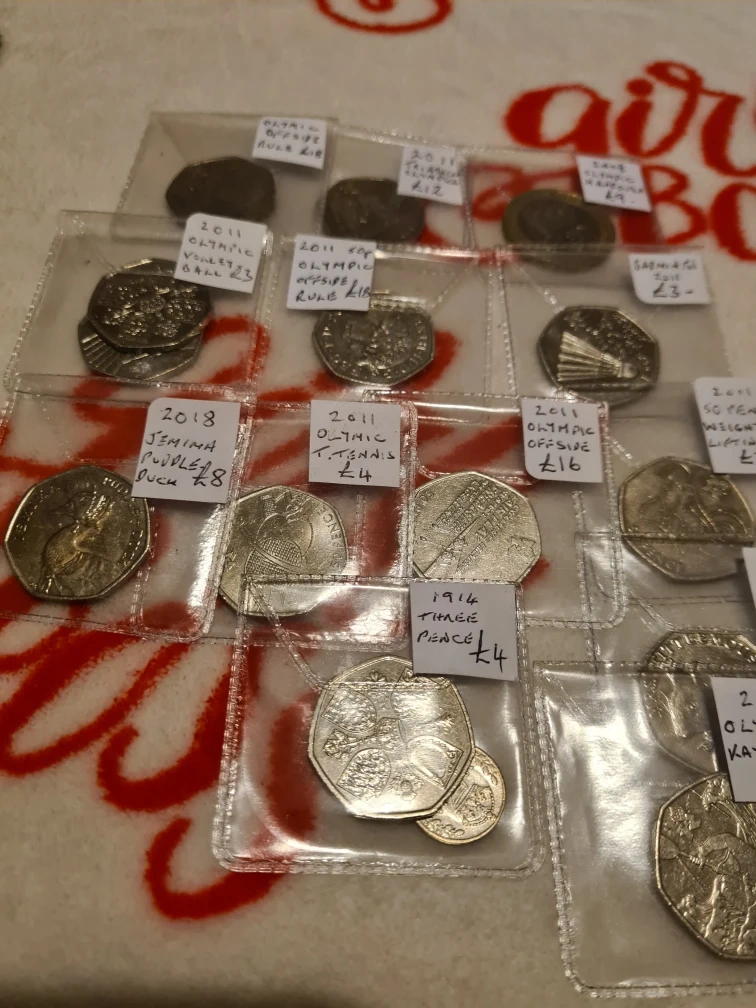 0 reviewsSelling a collection of 50p coins, including various Olympic designs from 2011 and other commemorative coins. Individual prices are marked on the coin sleeves, ranging from £3 to £16. Perfect for collectors!