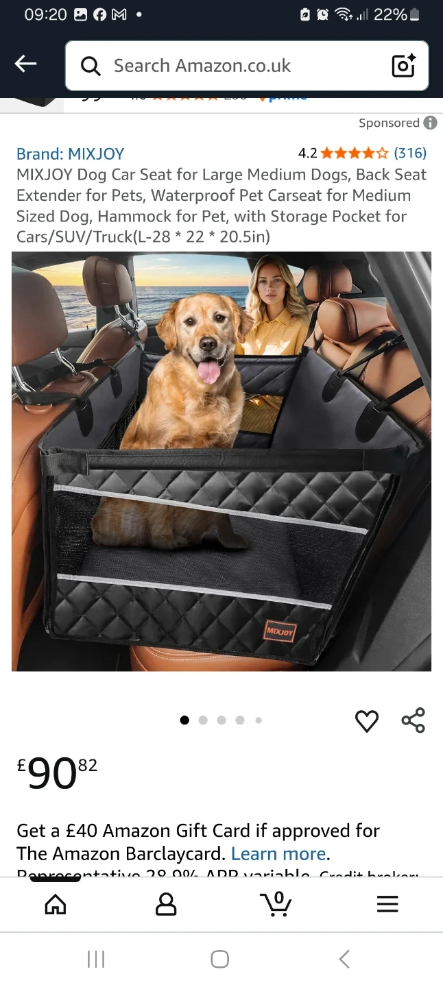 2 reviewsSelling a MIXJOY dog car seat, perfect for large to medium dogs. It acts as a back seat extender and waterproof pet carseat, keeping your car clean and your furry friend safe. It's designed as a hammock with storage pockets, suitable for cars, SUVs, and trucks. Dimensions are approximately L-28 x 22 x 20.5 inches. Originally bought for £90.82