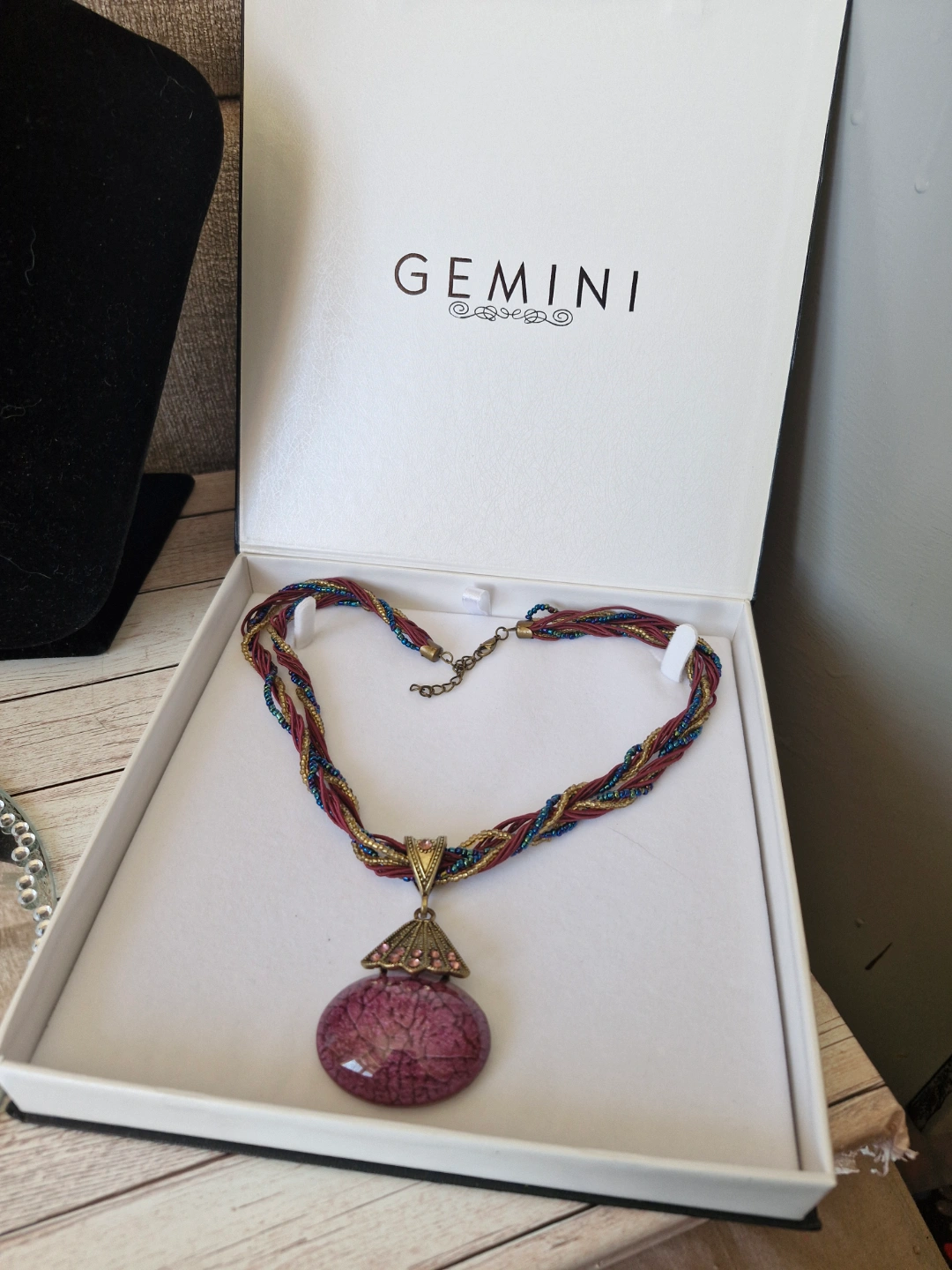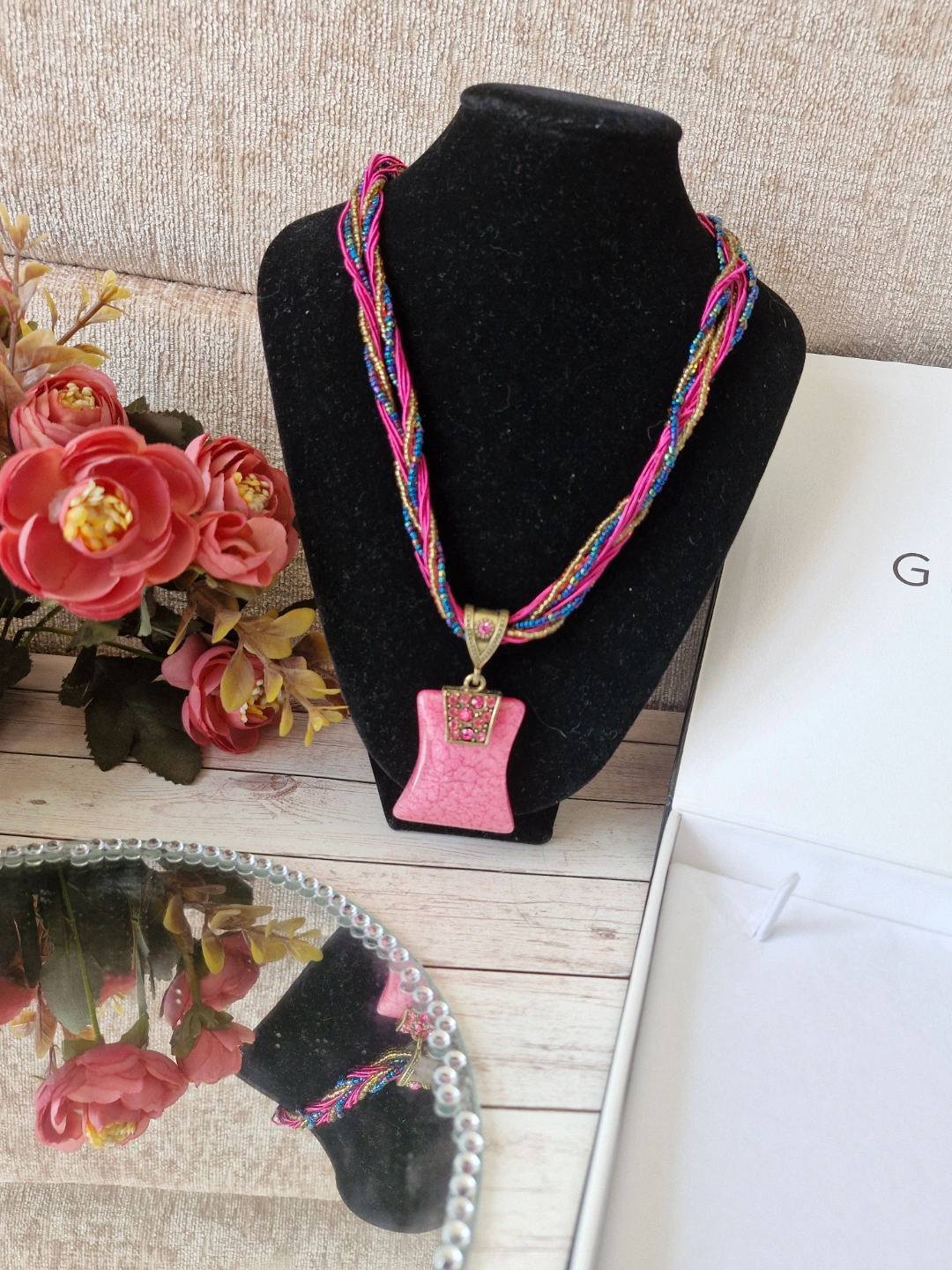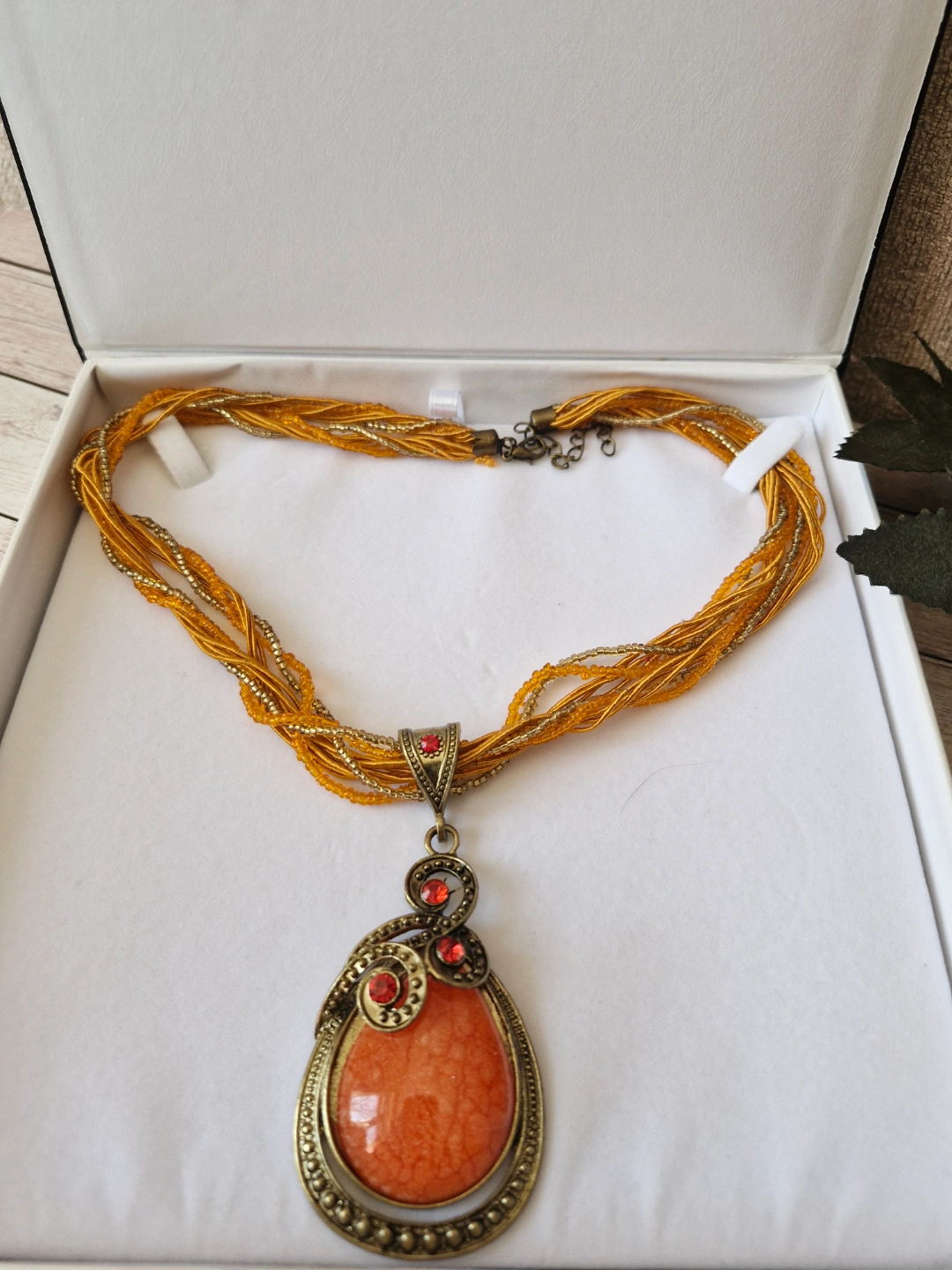 1 reviewStunning statement necklace. Features multiple strands of beaded cord and a large stone pendant. Beautiful colours and unique design. Presented in a gift box.£15each